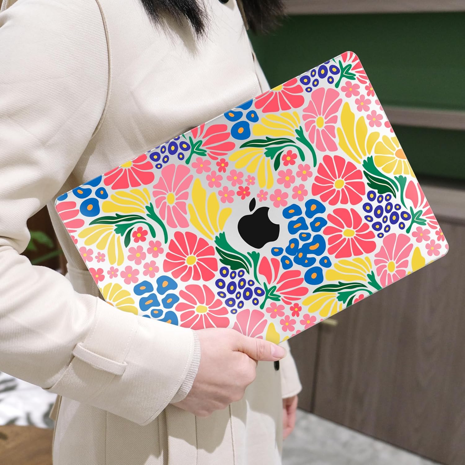 MEEgoodo for MacBook Air 13 inch Case 2021 2020 2019 2018 Released A2337 M1 A2179 A1932 with Touch ID, Plastic Hard Shell & Keyboard Cover Compatible with MacBook Air Case 13.3, Groovy Flower