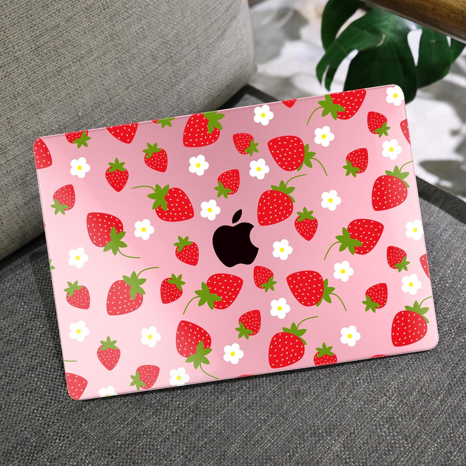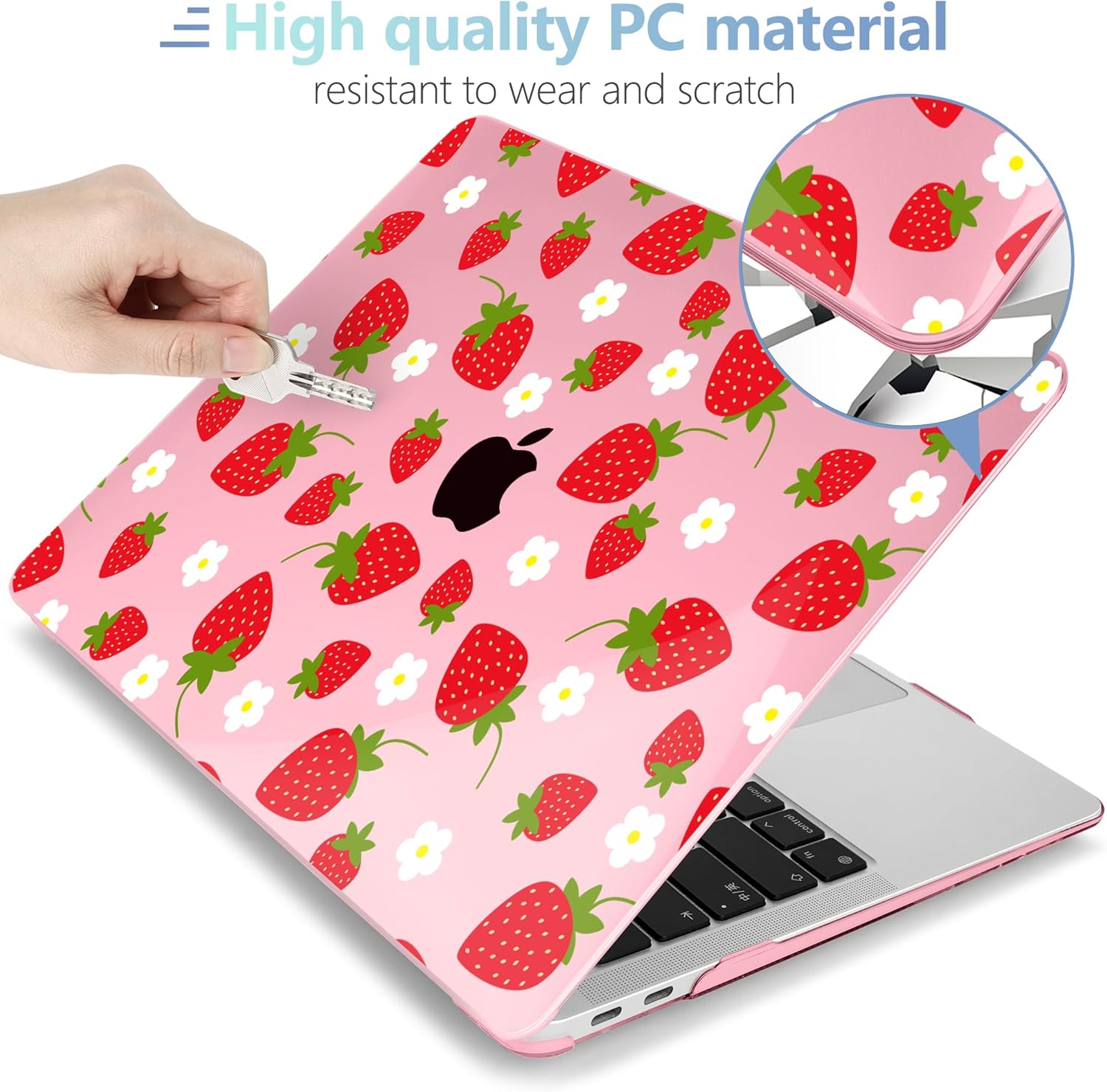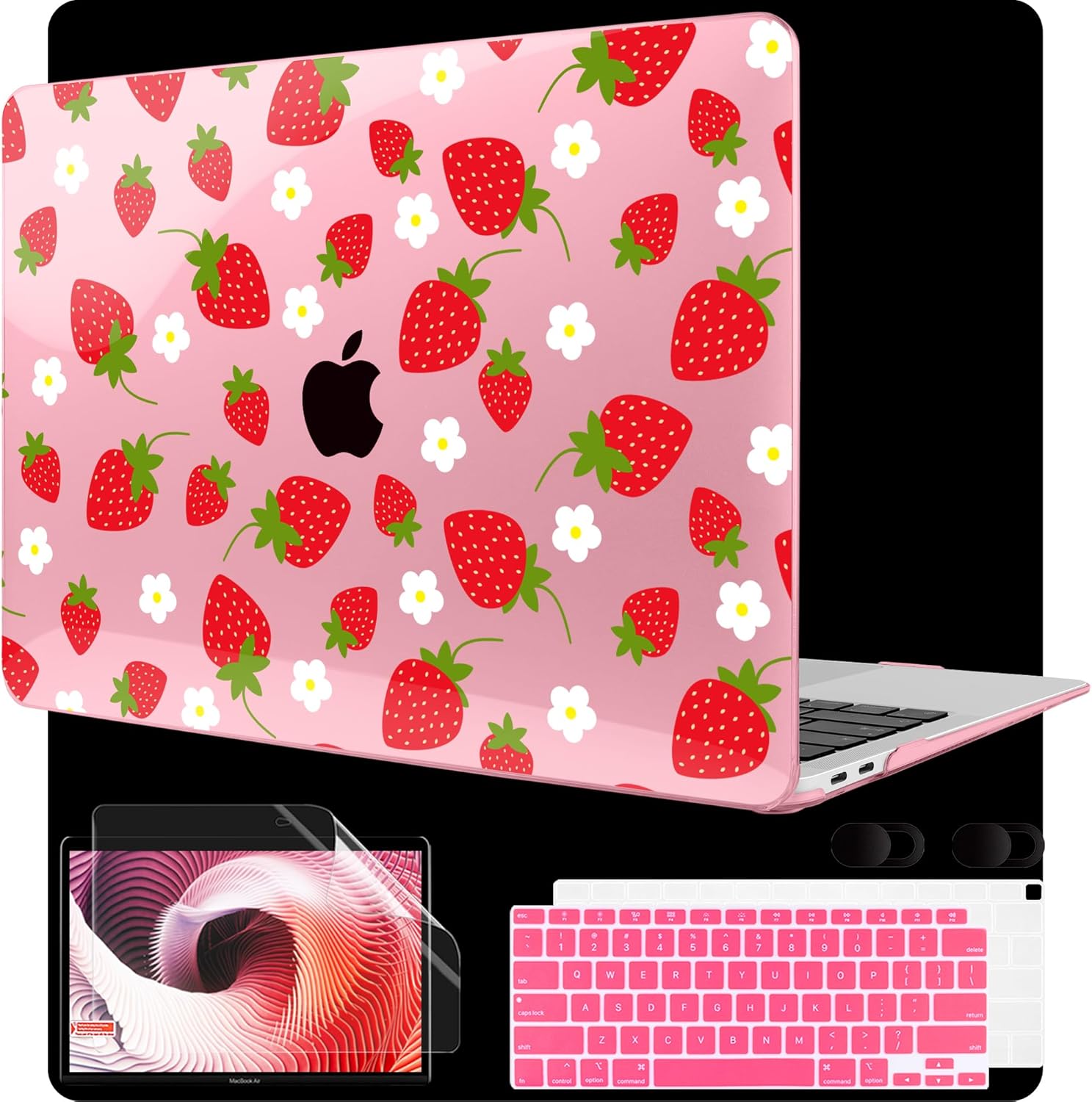 MEEgoodo for MacBook Air 13 inch Case 2021 2020 2019 2018 Released A2337 M1 A2179 A1932 with Touch ID, Plastic Hard Shell & Keyboard Cover Compatible with MacBook Air Case 13.3, Strawberries & Flowers