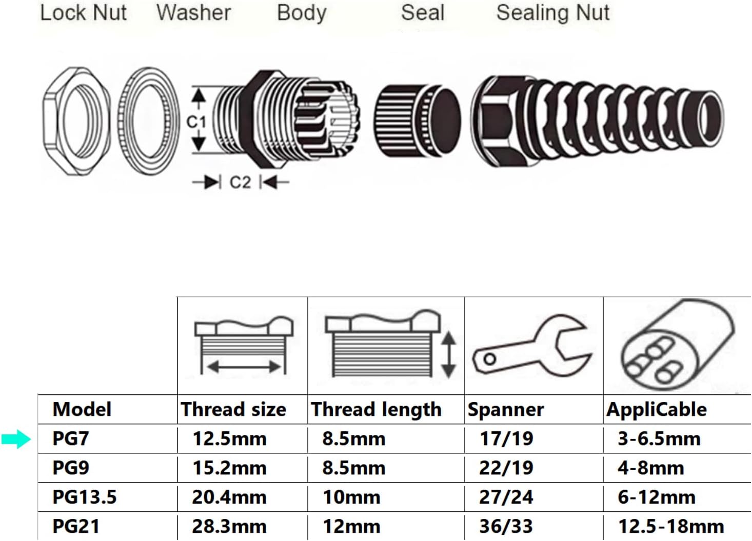 - 【Simple Installation】: The PG7 cable gland kit is easy to install without special tools. It comes with a locknut to securely hold the cable in place.