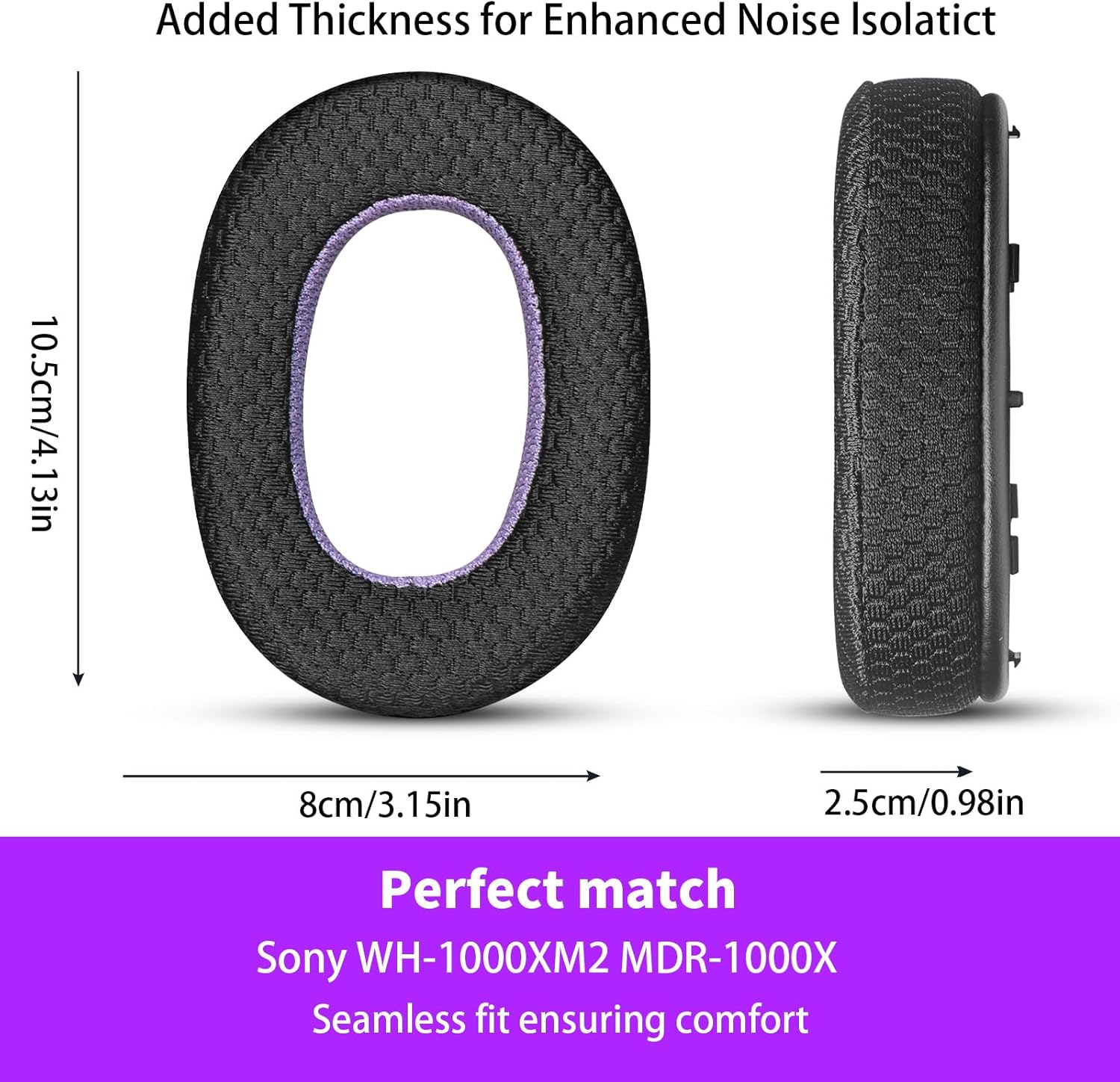 Breathable Mesh Replacement Earpads for WH-1000XM2/MDR-1000X - Comfortable Black/Purple Ear Pad Cushions