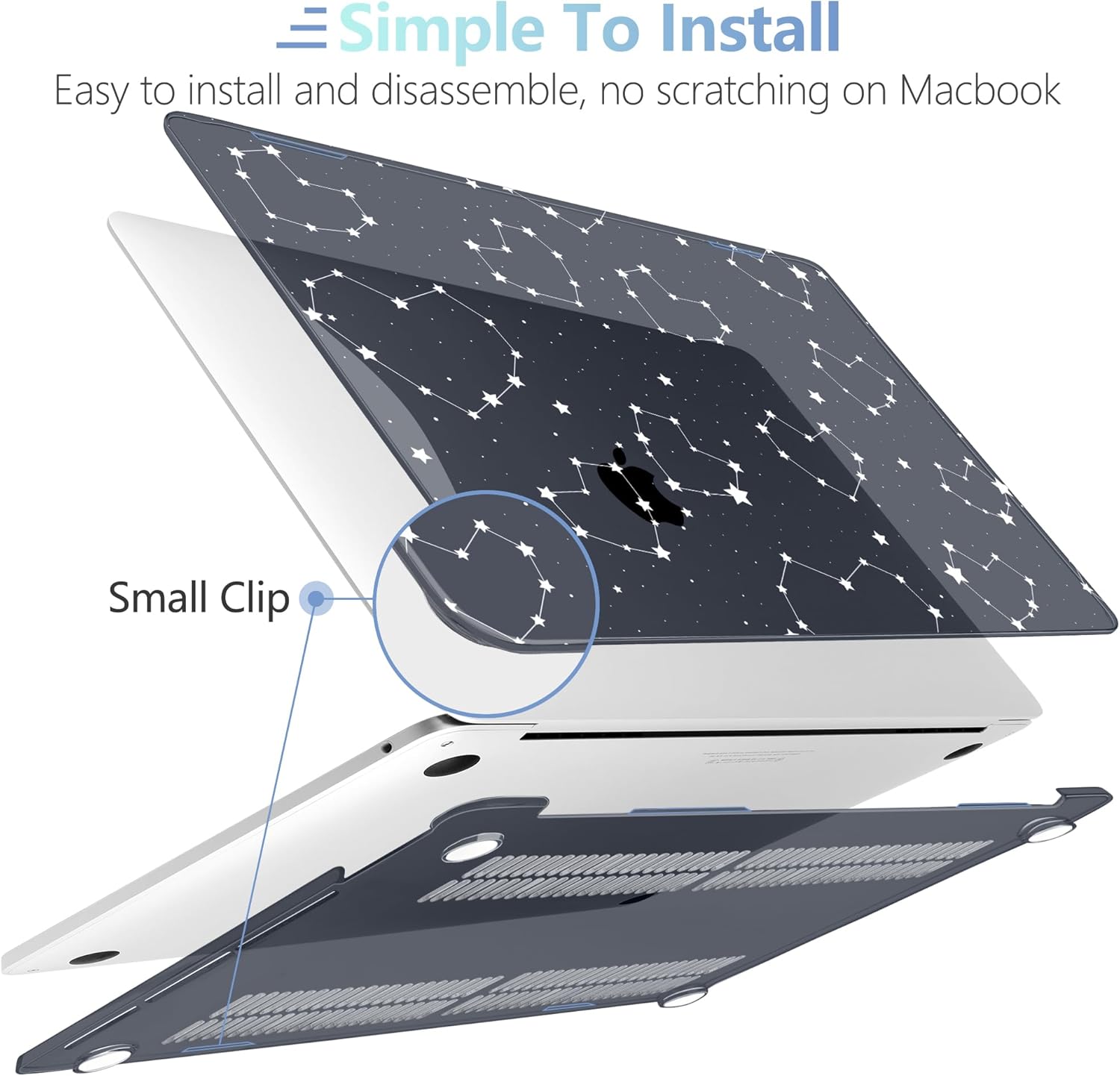 MEEgoodo Case for MacBook Pro 13 inch Case 2022 2021 2020 A2338 M2/M1 A2251 A2289, Laptop Hard Shell with Keyboard & Camera Cover Compatible with 13 inch MacBook Pro,Constellations & Hearts