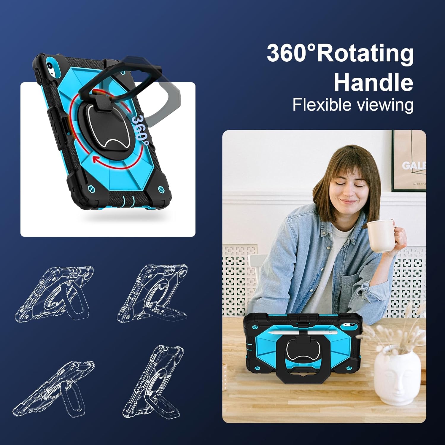 Case for iPad (A16) 11th Generation 11 Inch (2025) / iPad 10th Generation Case 10.9 Inch (2022) with 360° Rotating Stand Screen Protector Pen Holder Shoulder Strap, Black Blue