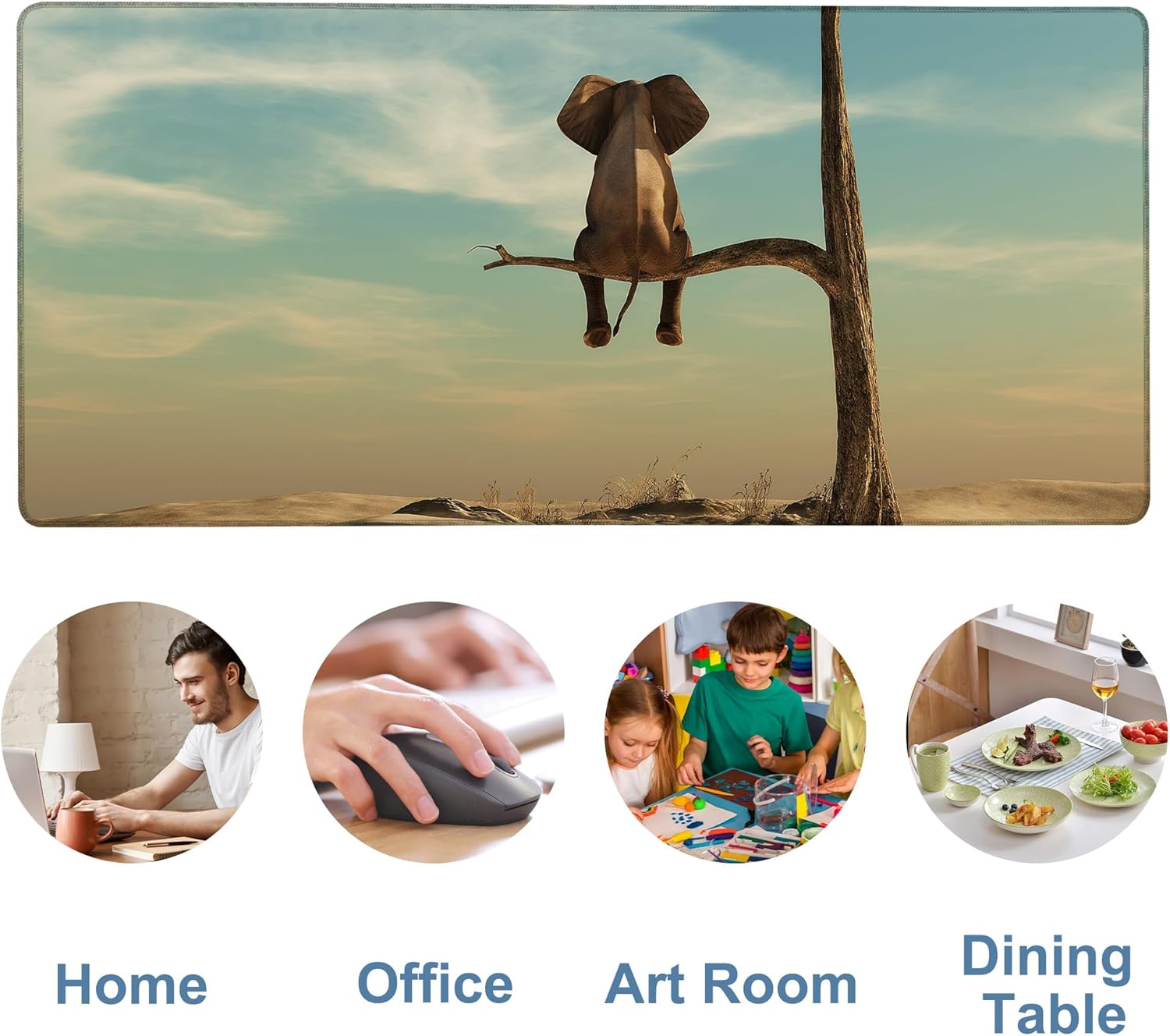 A Elephant Gaming Mouse Pad 3mm Thick Stitched Edge Waterproof Non-Slip Large Computer Keyboard Mouse Mat,Suitable for Office Entertainment Decorative Desk Pad 35.4 x 15.7 Inches