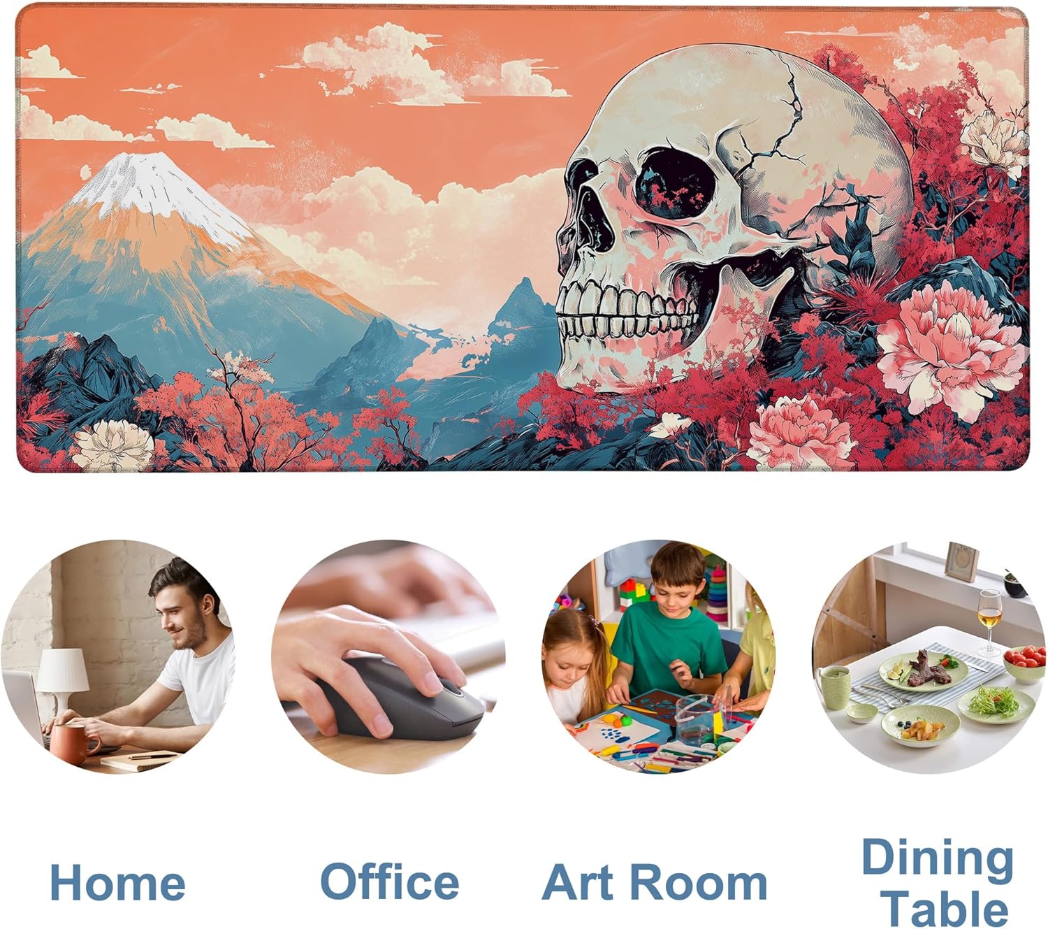 Anime Skull Gaming Mouse Pad 3mm Thick Stitched Edge Waterproof Non-Slip Large Computer Keyboard Mouse Mat,Suitable for Office Entertainment Decorative Desk Pad 35.4 x 15.7 Inches
