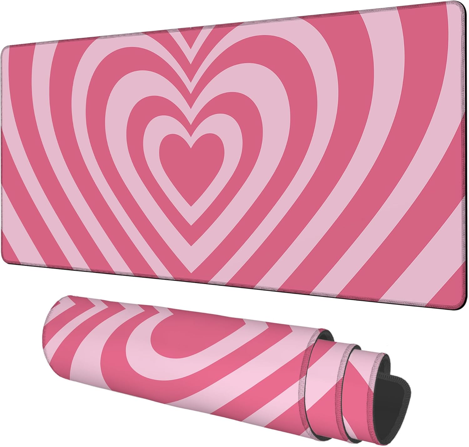 Gaming Desk Pad Large Extra Length Retro Style Hearts Mouse Pad Keyboard Laptop Non-Slip Waterproof with Rubber Base Thick Stitched Edge Mouse Mat for Office Home 35.4 x 15.7 Inches