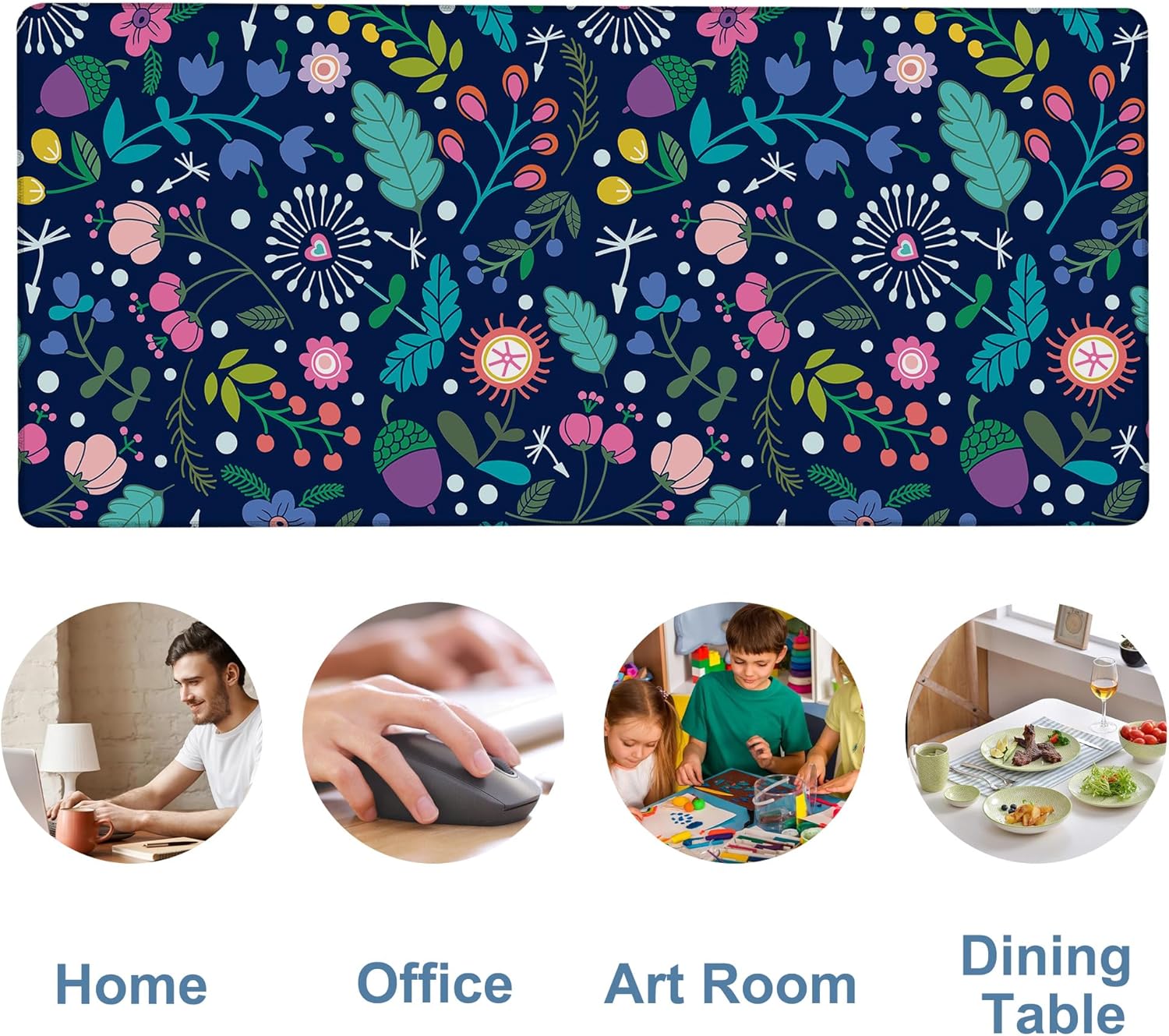 Gaming Desk Pad Large Extra Length Beautiful Floral Mouse Pad Keyboard Laptop Non-Slip Waterproof with Rubber Base Thick Stitched Edge Mouse Mat for Office Home 35.4 x 15.7 Inches