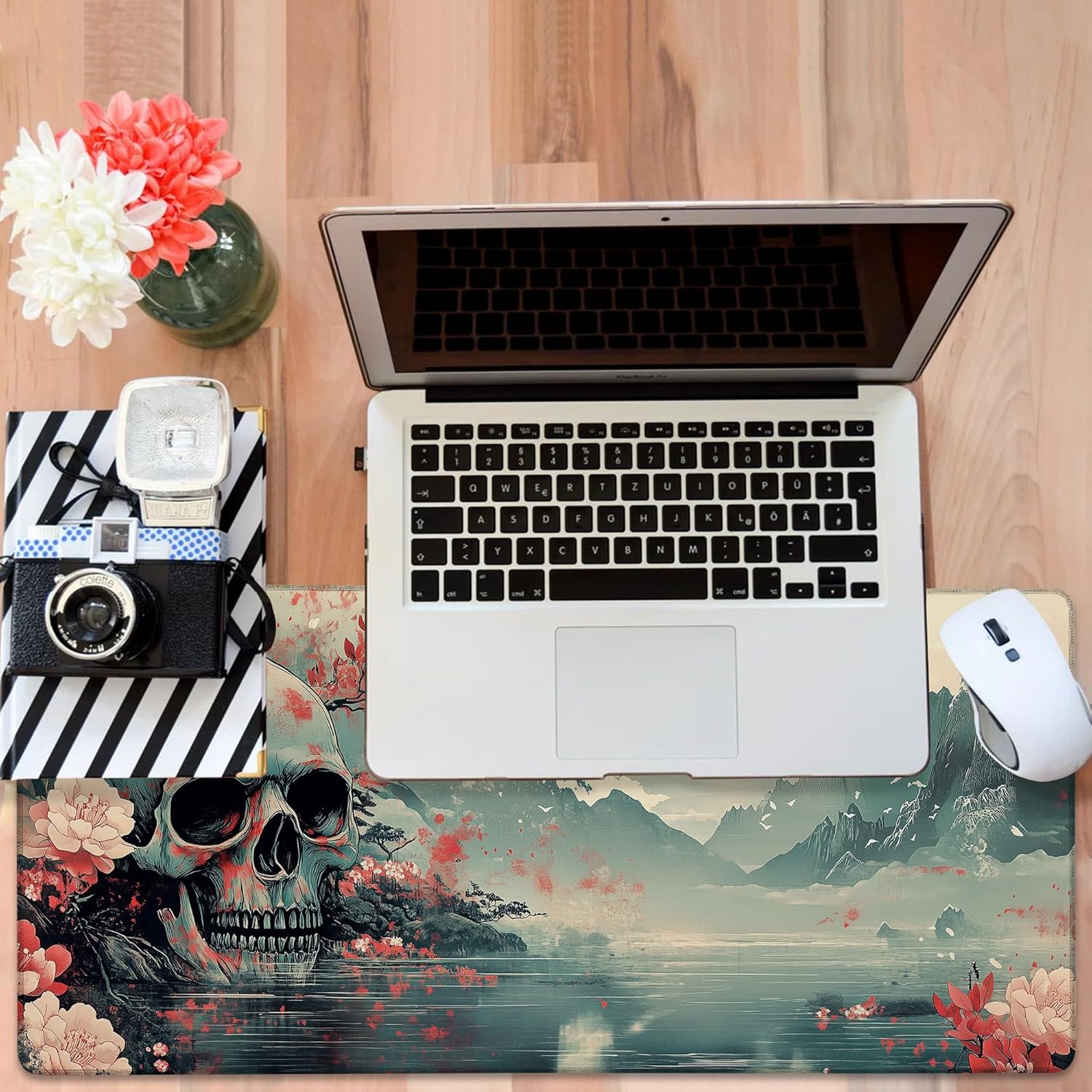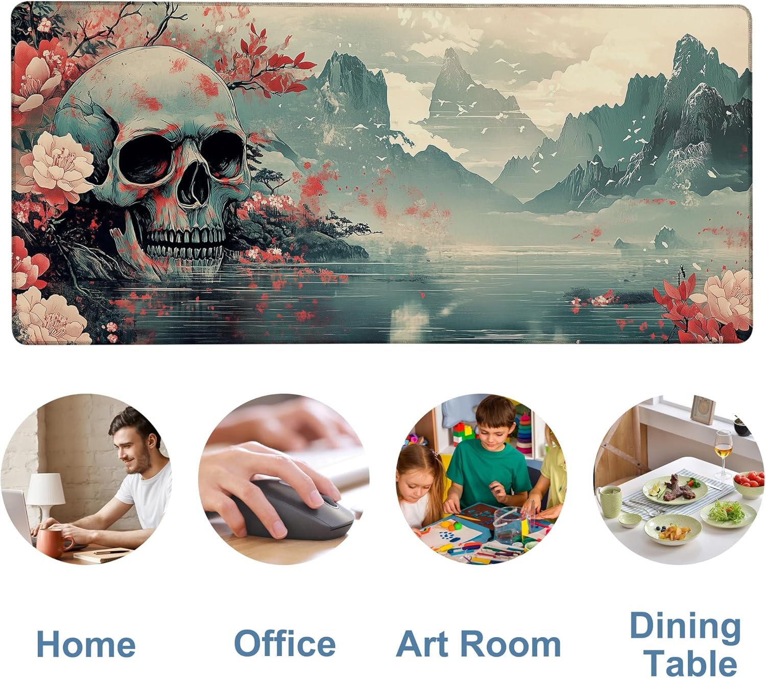 Gaming Desk Pad Large Extra Length Evil-Looking Skull Mouse Pad Keyboard Laptop Non-Slip Waterproof with Rubber Base Thick Stitched Edge Mouse Mat for Office Home 35.4 x 15.7 Inches