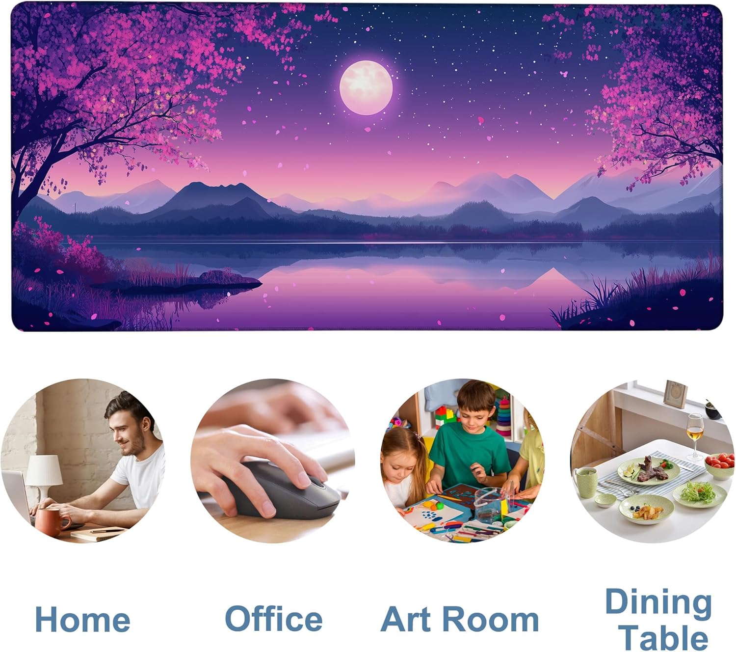 - Extra Large Size:The keyboard mouse mat measures 35.4 x 15.7 inches,with a large size design.The desk mat can cover most of the desktop area,enough to accommodate a computer,keyboard and other desktop items.The large size desk pad can better protect the desktop.Suitable for daily use,work and games