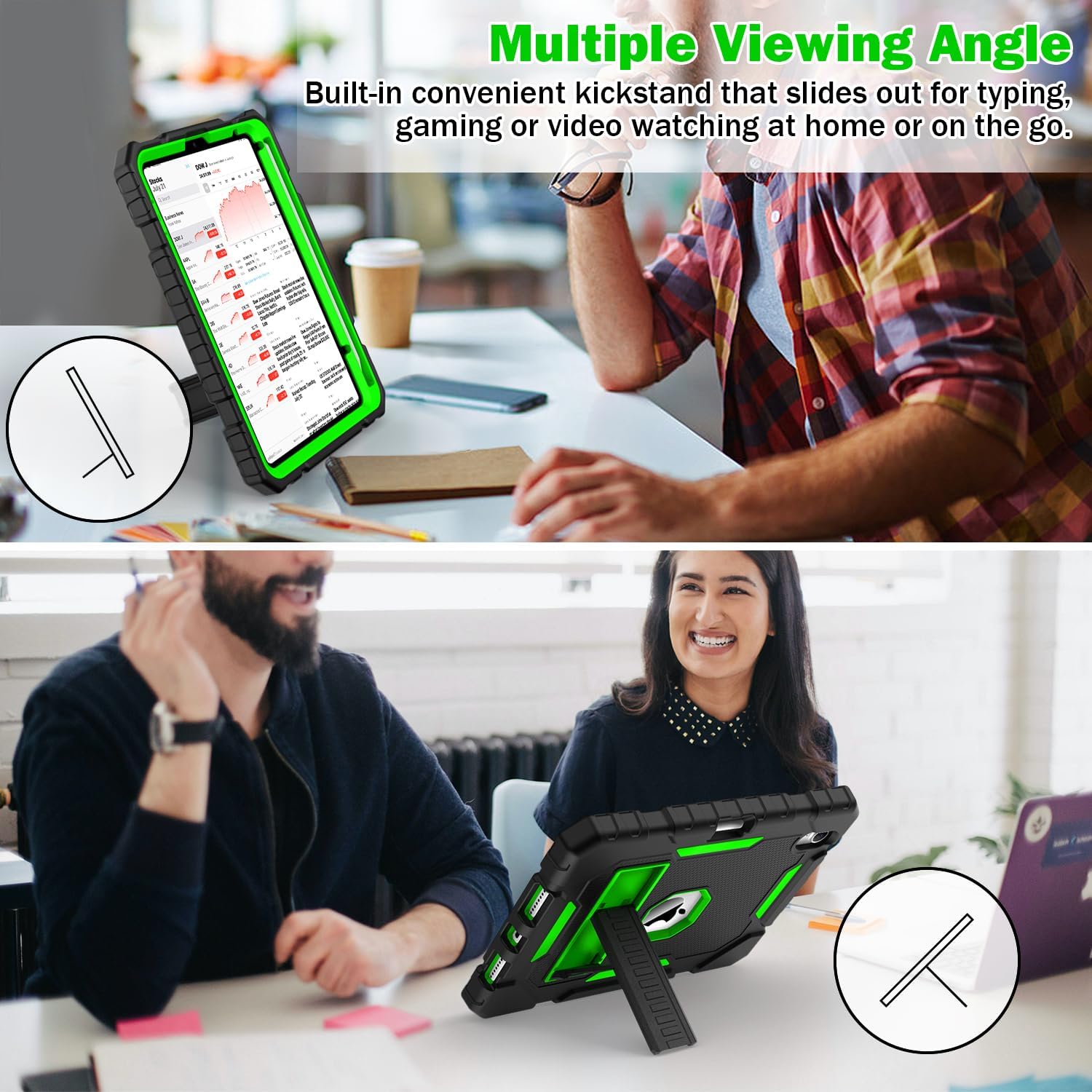 Grifobes Case for iPad mini 7 (A17 Pro) 2024 / Mini 6 2021 8.3 inch, Heavy Duty Shockproof Rugged Cover with Pencil Holder Stand, for I Pad Mini7th/6th Gen 8.3" Case for Kids Boys (Black+Green)