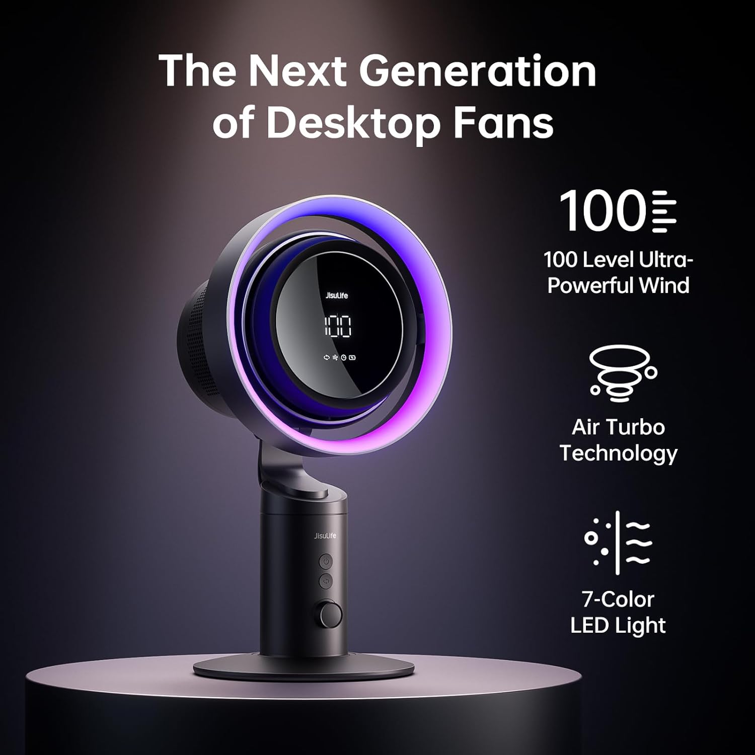 JISULIFE Table Fan Pro3, 3-IN-1 Turbo Oscillating Fan with RGB Light, 100-Speed Adjustable, 10000mAh Rechargeable Battery, Powerful Airflow for Desktop/Office/Bedroom, Gifts for Men/WoMen