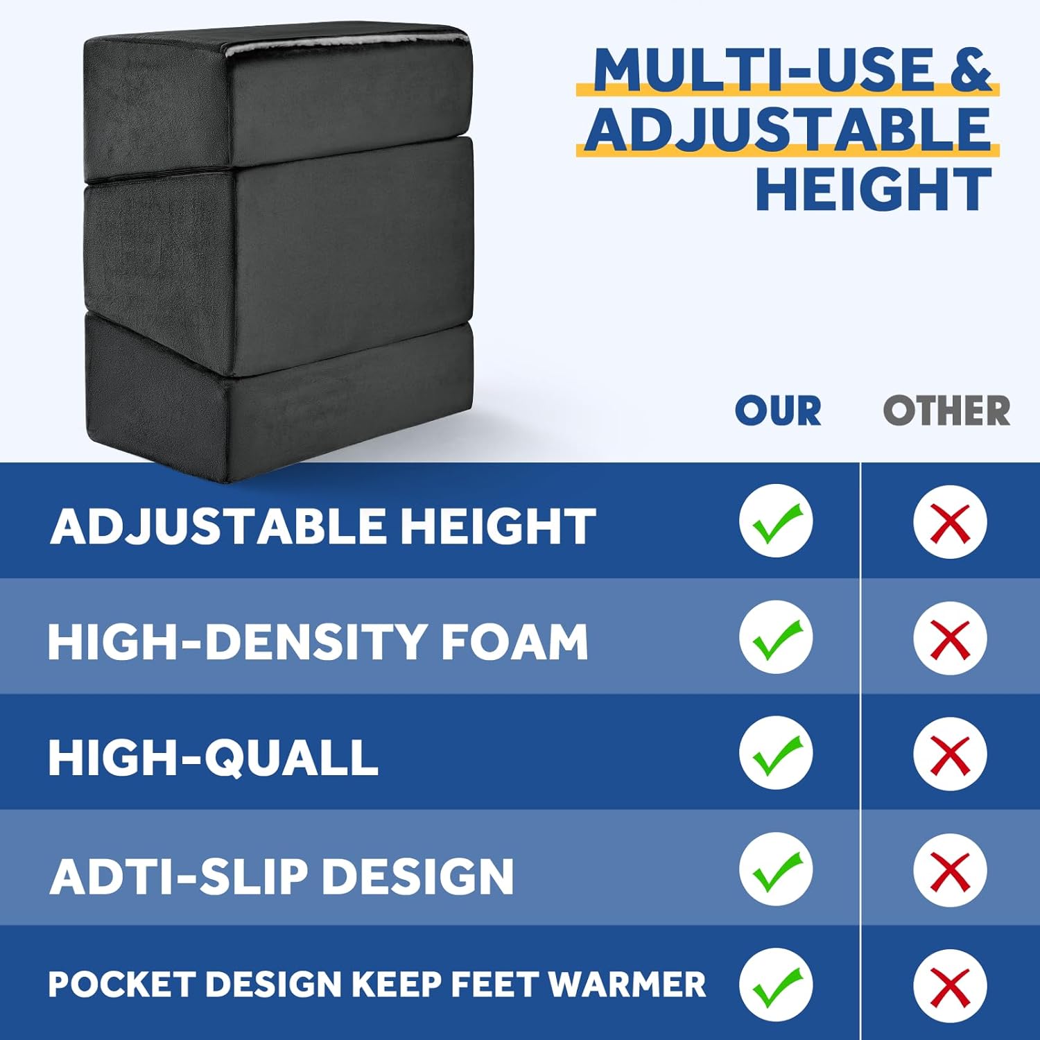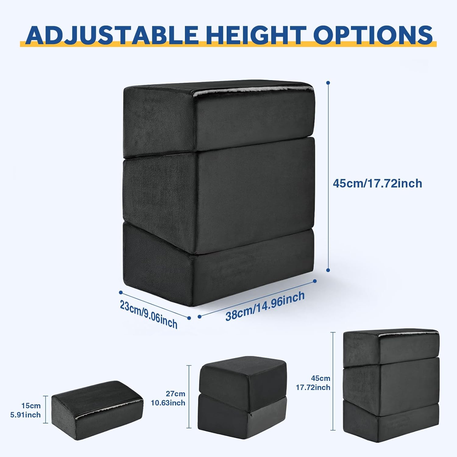 - ❤ [ Adjustable Foot Rest ] Wantell footstool offers you 3 adjustable height options of 6 inch and 11inch, 17inches. You can increase or decrease the number of layers according to the needs of different scenarios to maintain the correct sitting position while providing you with maximum comfort.