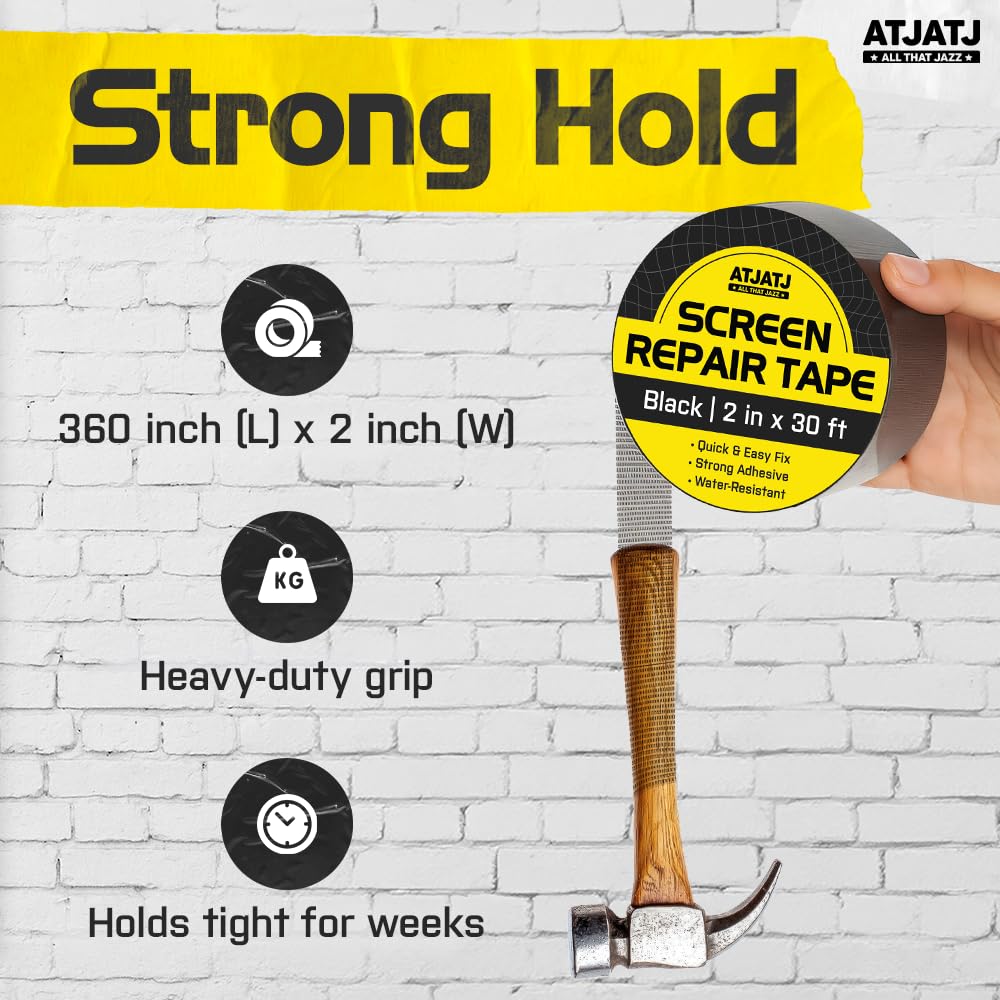 2in x 30ft (360in) Window Screen Repair Tape, Screen Door Replacement Kit, Mosquito Net Repair Tape, Window Net Screen Patch, Mesh Tape for Drywall Repair, Screen Patches for Ripped Screen, Black