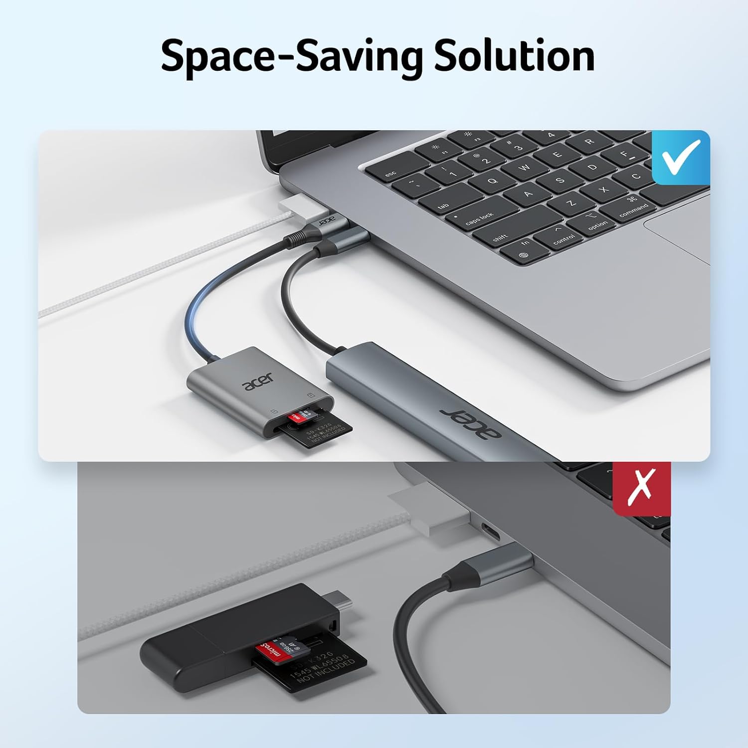 Acer SD Card Reader USB C, Dual Slots Type C to Memory Card Reader, Aluminum Micro SD Card Camera Adapter for MicroSD, SDHC, SDXC, Compatible with iPhone16/15, MacBook, iPad Pro, Android, Laptop