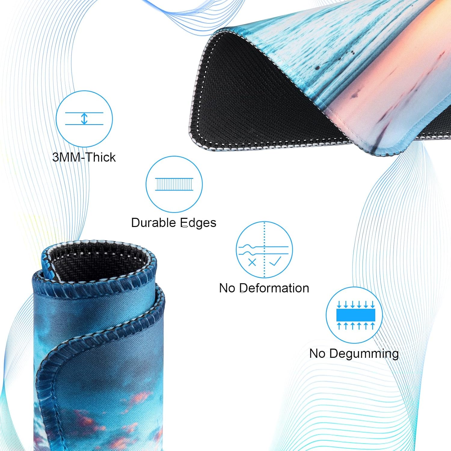 - High quality material: The mouse pad is made of high-quality and safe materials. Smooth as silk, making it easy for the mouse to move. The soft memory is more flexible and comfortable to use. The anti slip PU computer mouse pad provides a stable surface for precise movement.