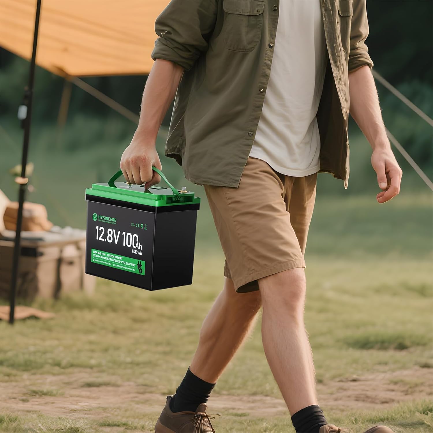 - 【Built-in 🔋100A BMS】HYSINCERE 12V 100Ah mini LiFePO4 Lithium Battery is built-in upgraded BMS, which provide over-charging, over-discharging, over-current and short-circuit protection, ensuring safe use in low temperature and any environment.