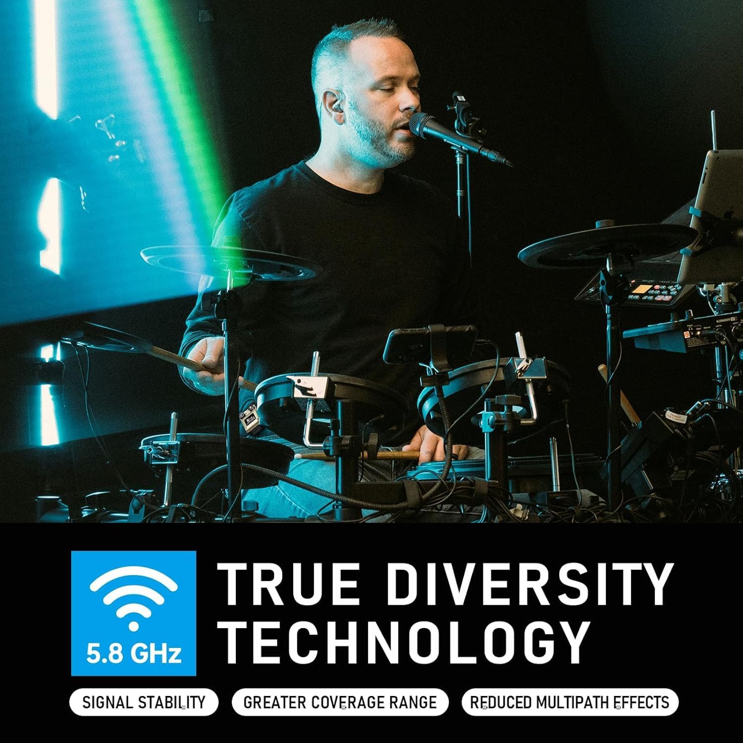 - Reliable: 5.8 GHz true diversity wireless in ear monitor system, Solid RF connection over a 100 ft / 30.5 m distance, perform onstage or at home without interfering with other wireless devices