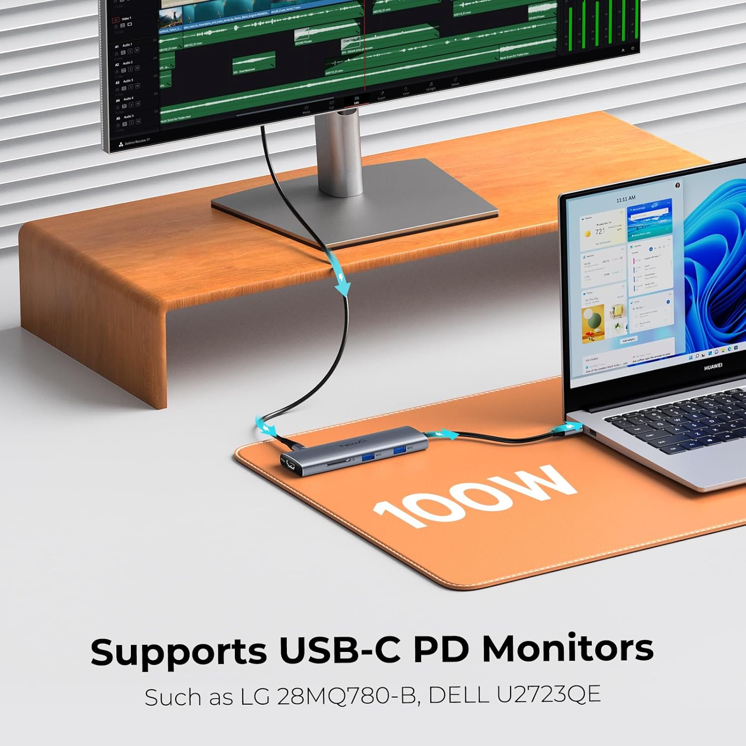 - 【Native USB-C PD Monitor Optimization】 Directly power and drive premium USB-C PD monitors (e.g., Dell Ultrasharp U2720Q, BenQ PD3220U) via the full-function USB-C port (4K@60Hz + 100W PD) – no separate power cable needed. Mix with HDMI displays for hybrid setups (USB-C + HDMI).