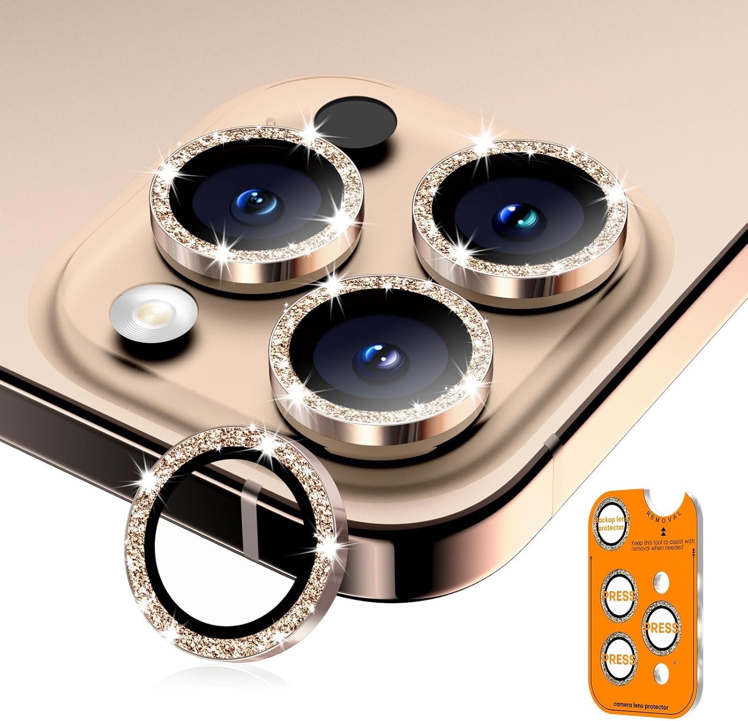 Camera Lens Protector for iPhone 16 Pro Max/16 Pro/15 Pro Max/15 Pro/14 Pro Max/14 Pro, Sapphire Glass Metal Individual Camera Cover Screen, Anti-drop, Case Friendly- Glitter Desert Titanium