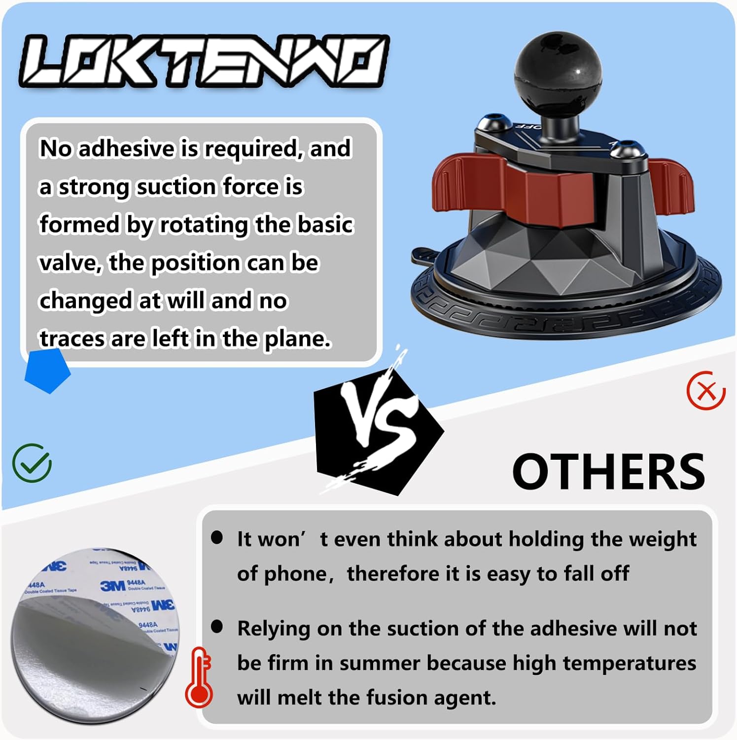 - Easy to Use: This twist-lock composite suction cup mount features an intuitive design. Release internal air by rotating the base valve to form a vacuum. Adjust the aluminum alloy arm by rotating its dedicated valve. The streamlined design simplifies installation