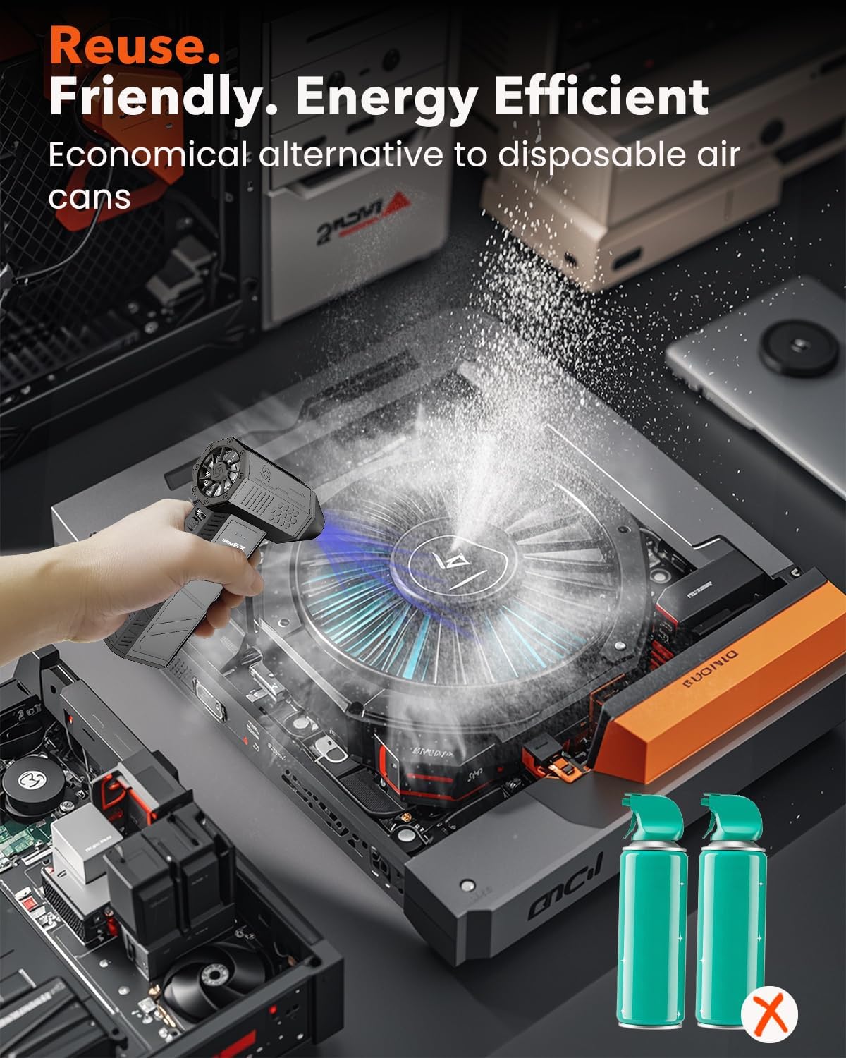 - Eco-Friendly and Safe for Sensitive Devices -Unlike traditional canned air, the KONPAYDE Electric Air Duster is an eco-friendly alternative that emits moisture-free compressed air, ensuring safe cleaning for cameras, keyboards, and gaming consoles. By reducing chemical emissions, this reusable air duster is a sustainable and economical choice for electronics cleaning and car detailing.