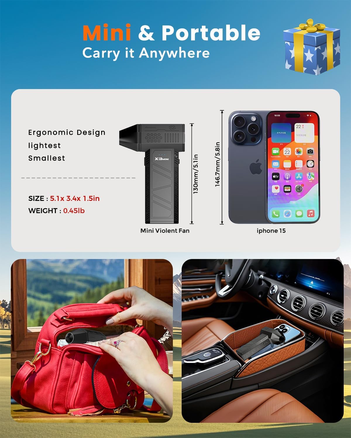 - Portable and Handheld Design for Versatile Use - The KONPAYDE Cordless Air Duster is the lightest and smallest handheld jet blower on the market, weighing only 205g and measuring 13cm. Its portable design makes it ideal for home, office, and car interior cleaning. With quiet operation and noise-reduction features, it’s a USB rechargeable air blower that’s easy to use and perfect for dust removal in hard-to-reach areas.