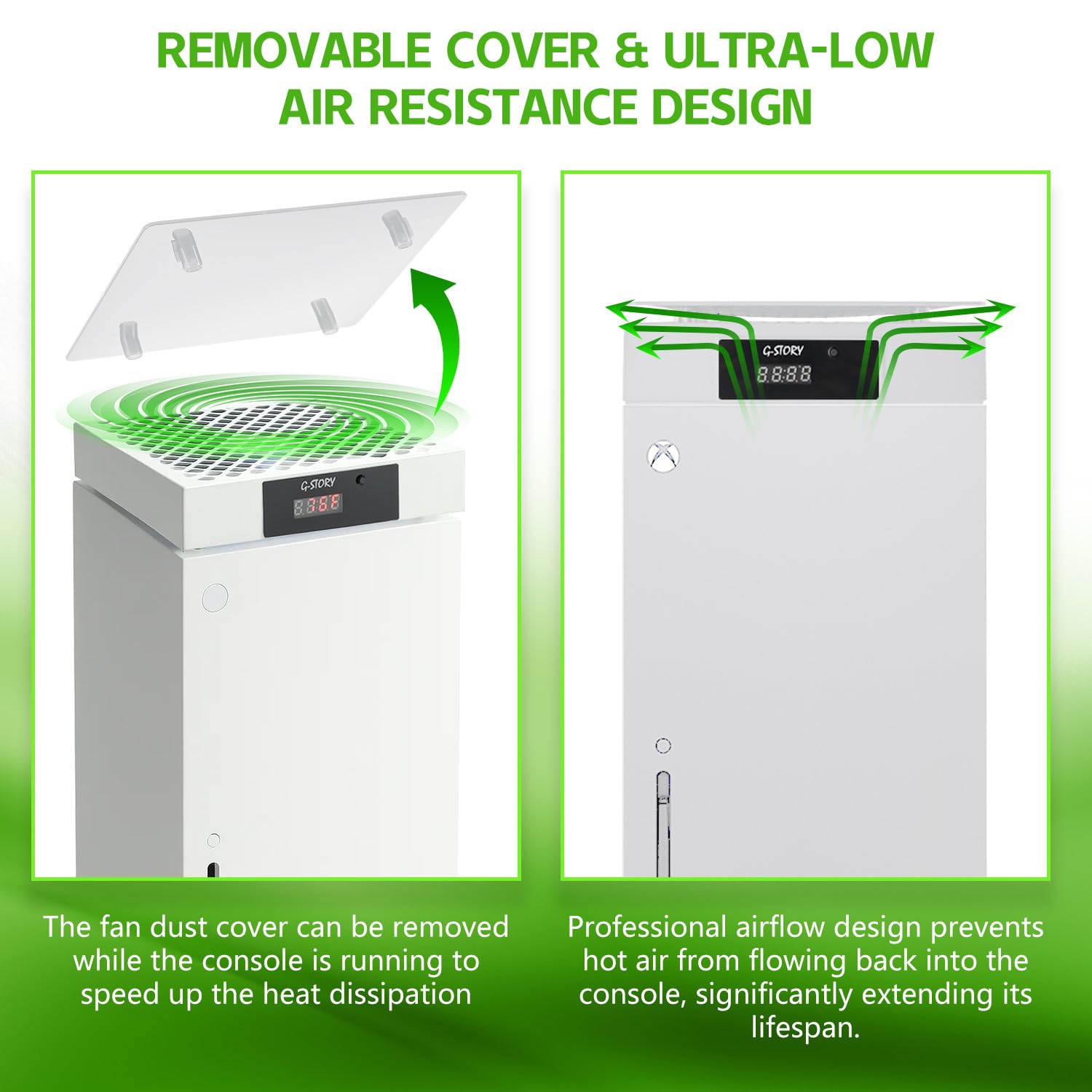 - 🍃Easy to Install: Just simply place the cooling fan on your console, and connect the cable to your xbox console, it will start to work. If you have any questions about using our product, please feel free to contact us. G-STORY is always here for you.