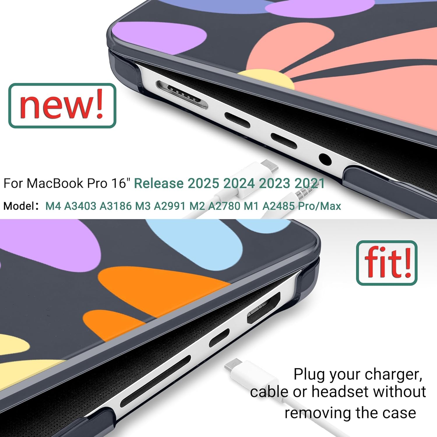 DONGKE for M4 MacBook Pro 16 Inch Case 2024 2023 2021 A3403 A3186 M3 A2991 M2 A2780 M1 A2485 Pro/Max Chip, Plastic Hard Shell Case & Keyboard Cover for Mac Pro 16 with Touch ID, Power Flowers