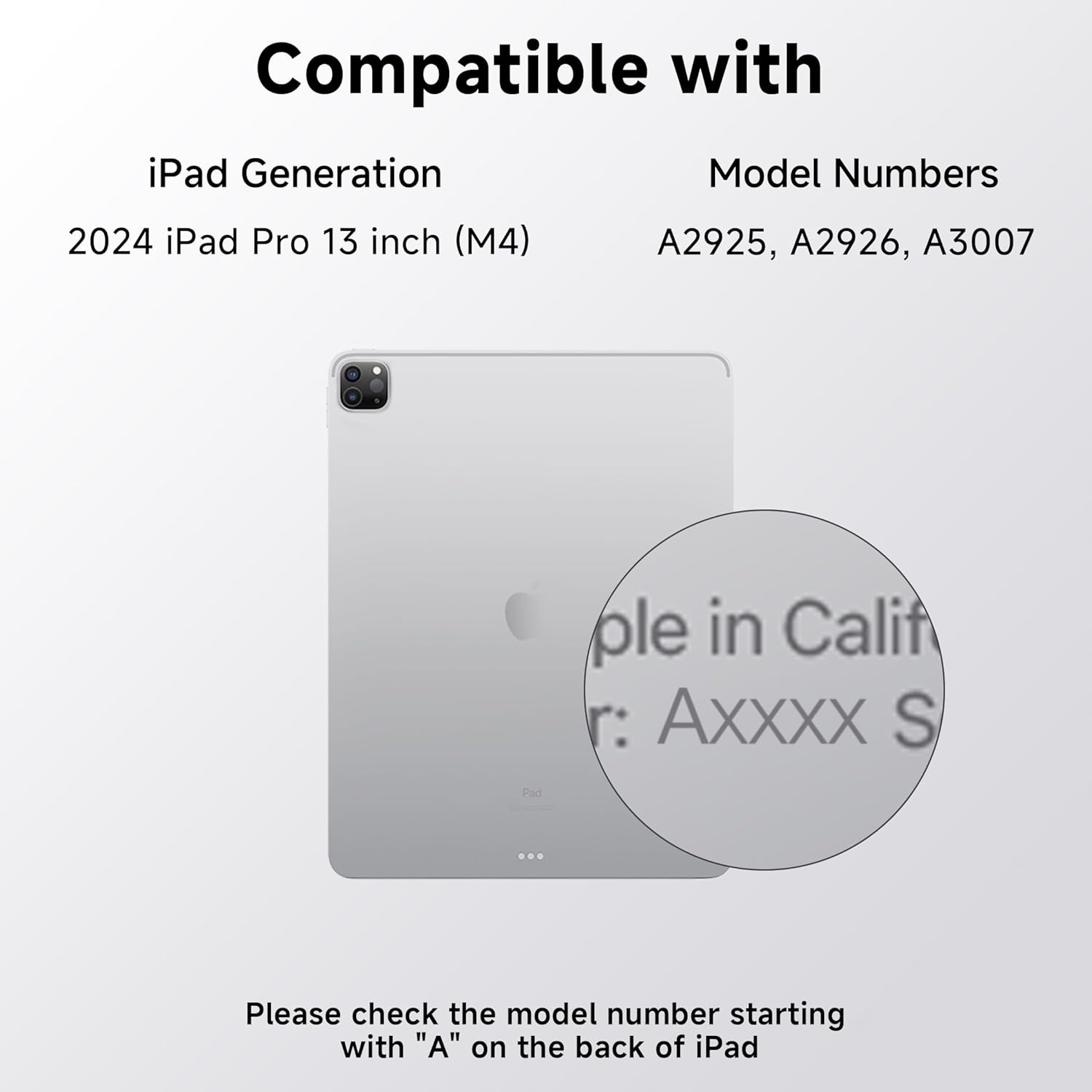 - Compatibility: Transparent ipad keyboard perfectly designed for the iPad Pro 13 inch (2024, M4); Model:A2925,A2926,Prior to purchase, verify the iPad model number (denoted by the prefix "A" on the device's rear casing) to ensure compatibility.