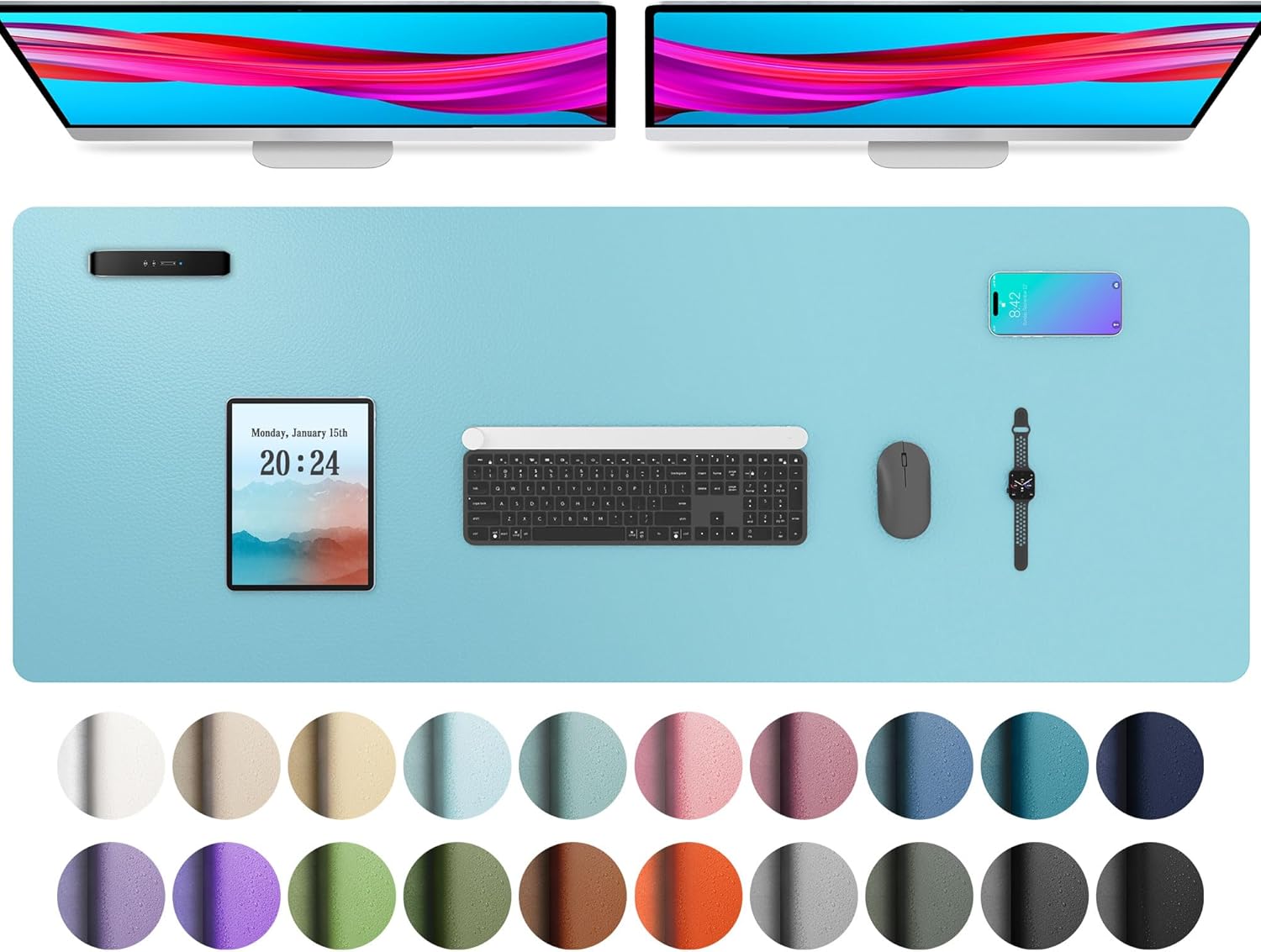 Aothia Large PU Leather Desk Pad Protector – Non-Slip Mouse Pad & Writing Mat for Office/Home, Waterproof, Easy to Clean (48" x 17", Blue Topaz)