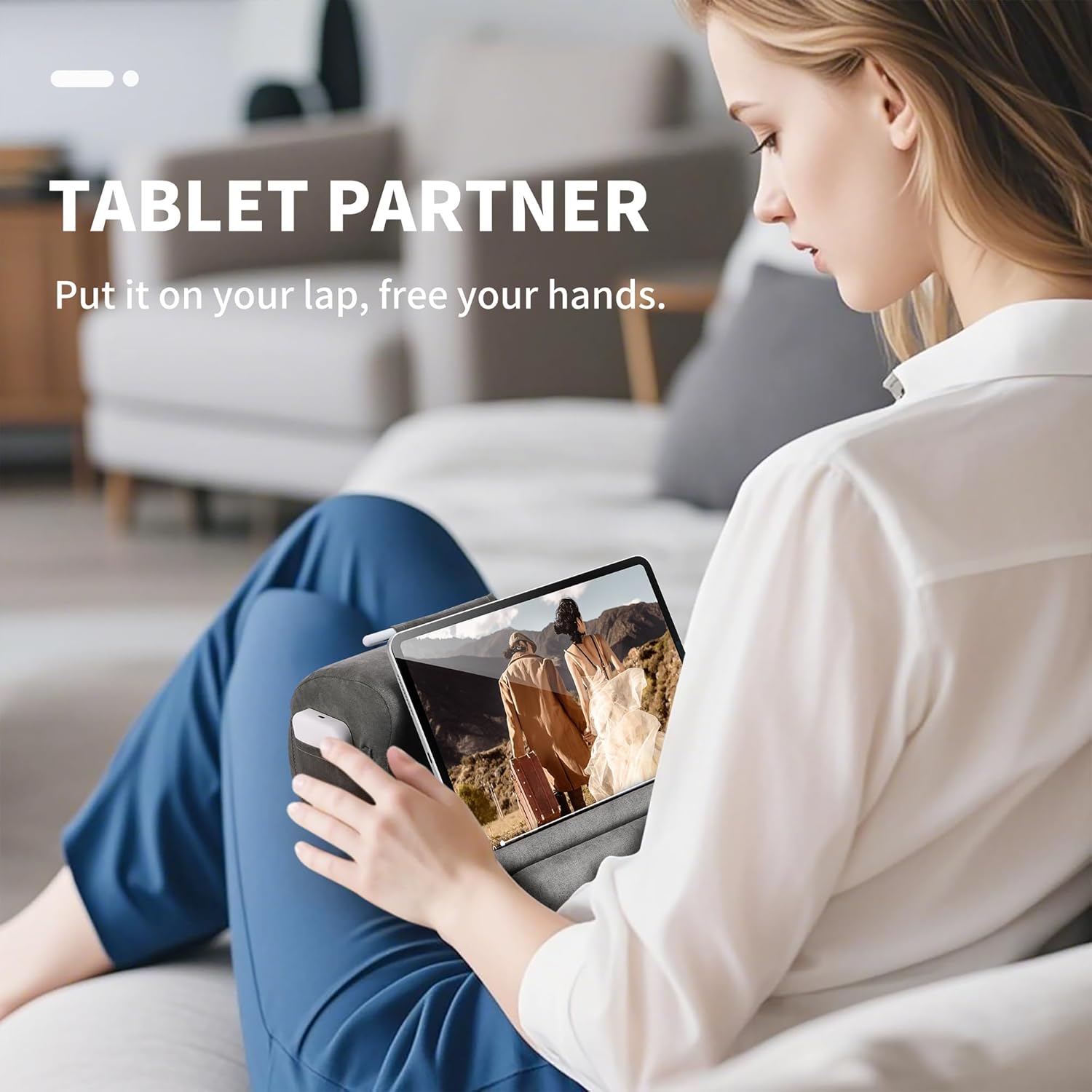 CreaDream Tablet Pillow Stand, Pillow Pad for IPad, Tablet Holder for Bed, Lap and Desk with 3 Viewing Angles, Tablet Accessory Compatible with 4-13 inch Kindle, Galaxy Tab, E-Reader (Gray)