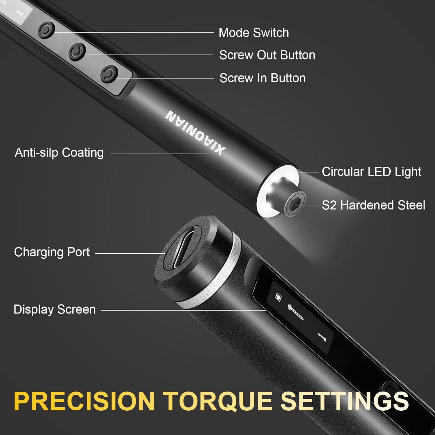 - Precision Adjustable Torque:This Electric Screwdriver Set features 5 adjustable torque settings–With 5 electric gears plus a manual mode,electric torque range of 0.1 to 0.5N.m(up tp 0.6 N.m)and a manual torque of 3.5N.m.The precise torque control makes the mini electric screwdriver set for repairing a variety of delicate electronic devices with accuracy.You get pinpoint control whether you're cracking open a laptop,assembling a drone, or tightening door hinges.