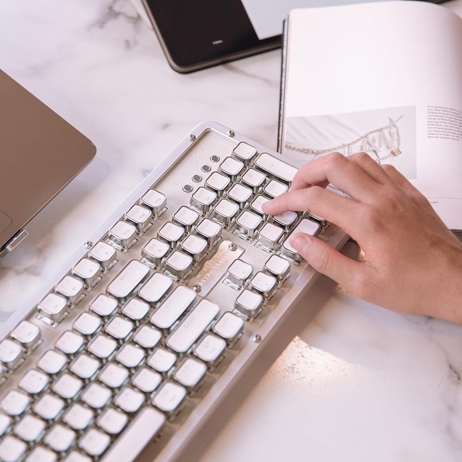 - Keyboard Description : Retro Classic Prestige Collection keyboard with typewriter-style design