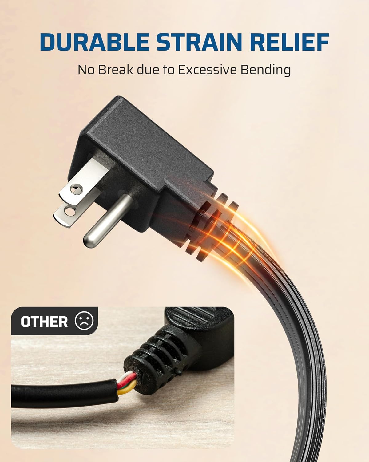 - [Heavy Duty & High Performance] Built with 14AWG pure copper wire, a reinforced plug, and a durable all-plastic design, this power cord supports up to 125V/15A/1875W, ideal for handling high-power household appliances and office equipment