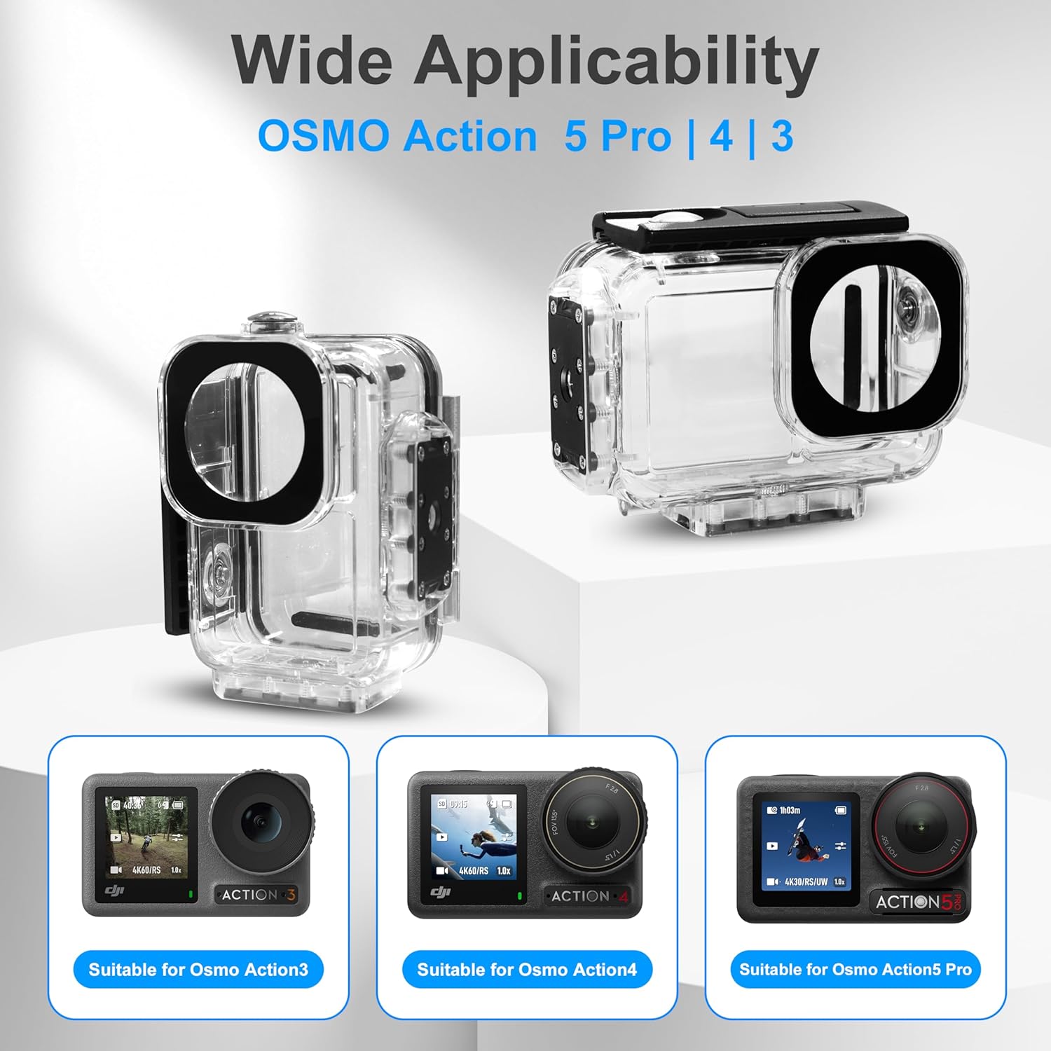 - 【Wide Compatibility】This waterproof housing case is compatible with DJI OSMO Action 5 Pro/Action 4/Action 3 cameras perfectly.It provides ultimate protection for your Action 5 Pro/4/3 during extreme outdoor activities and deep-water diving.