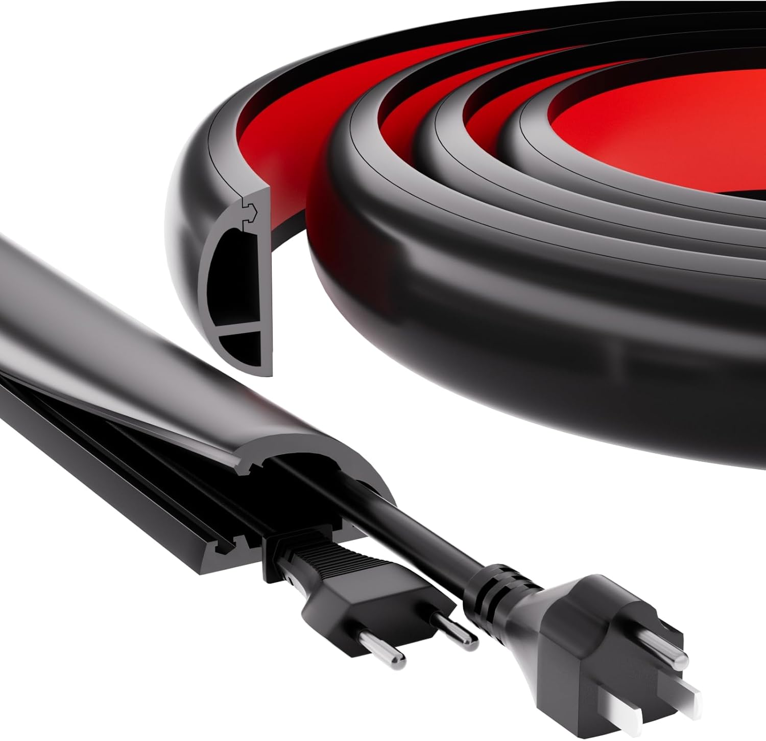 - Easy to Use: The cord cover floor has a strong adhesive tape, making installation easy. You can easily cut it to your desired length with scissors, slice open the side to insert the cables. Peel off the film and stick it to any floor or wall edge, including hardwood floors, tiles, or carpets.Perfect for home offices, playrooms, or hiding TV wires like a pro!