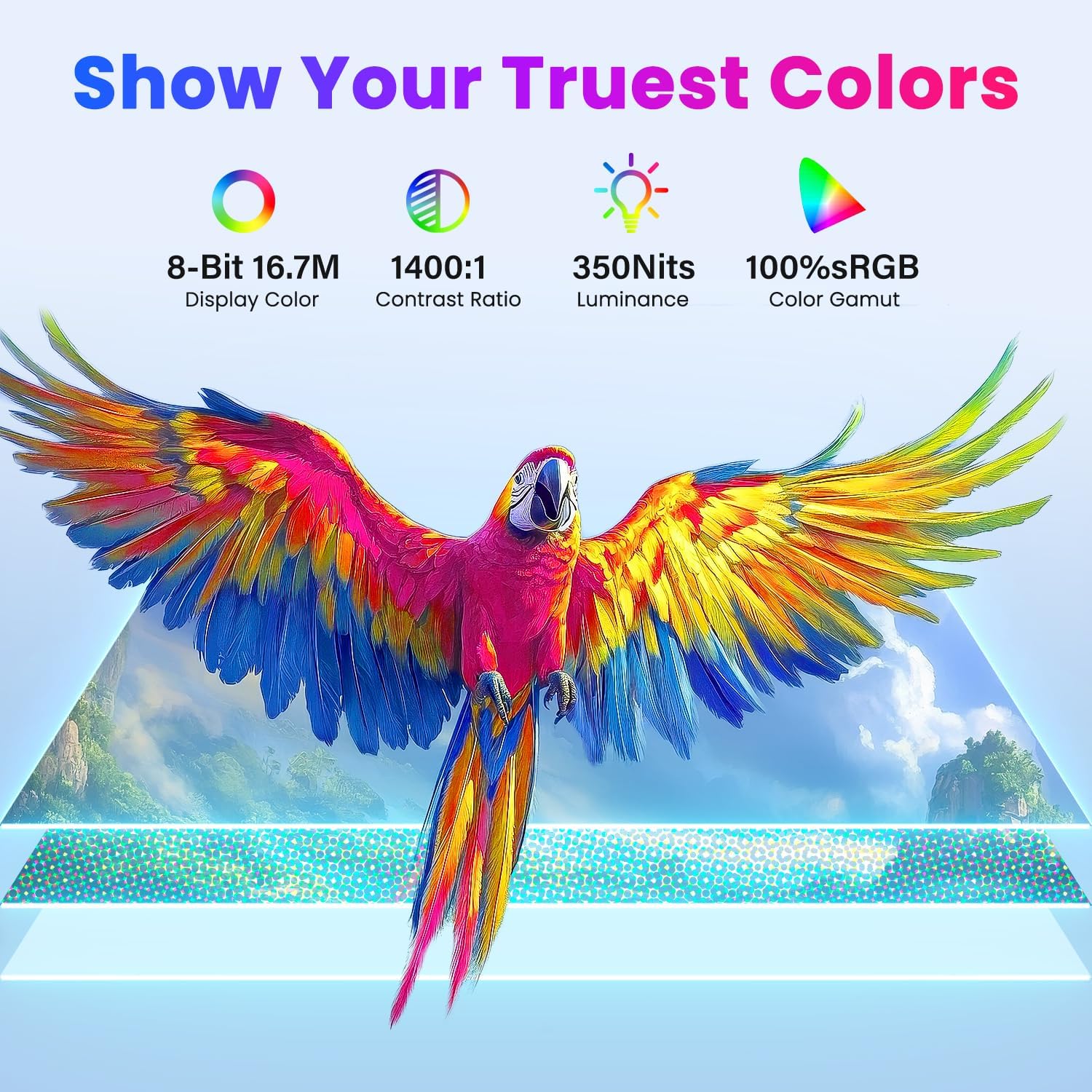 - 4K Portable Monitor: The 15.6 inch Upperizon portable monitor features an IPS panel, boasting 4K UHD resolution (3840 x 2160), 100% sRGB color gamut, 8-Bit and 16.7 million colors, 1400:1 contrast ratio, and 350 Nits brightness. With a 16:9 aspect ratio and 60 Hz refresh rate, it renders vivid visuals for gaming, content creation, and work with exceptional clarity and speed