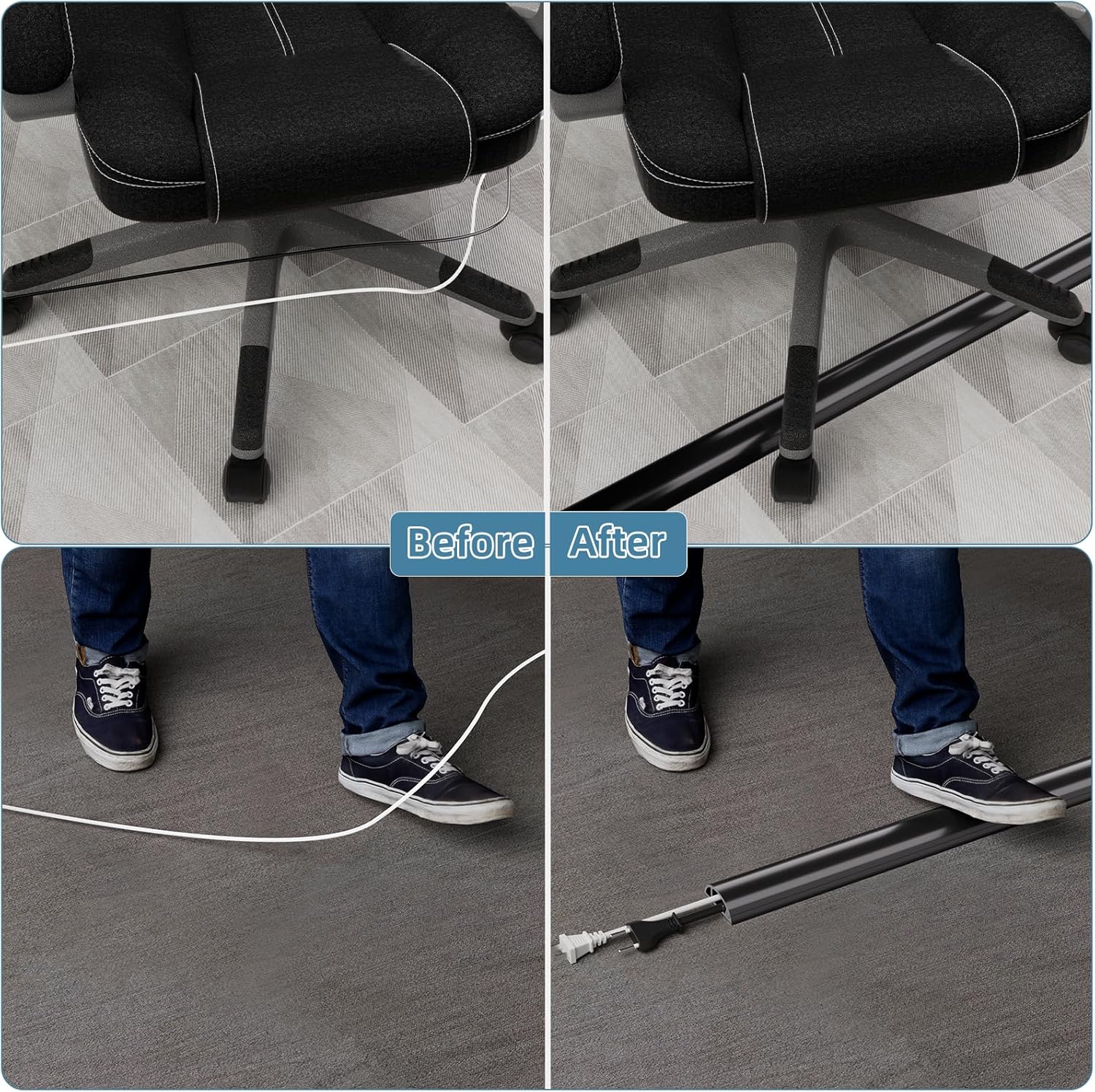 - Easy to Install: No need other professional tools to assist the installation. Just cut the length you need,peel off the adhesive tape and then stick it to the floor or wall edge,then place the cords into the channel, snap and close the cord cover. Whether it is hardwood floors, tiles or carpets, our cord covers for wires on floor can be laid flat immediately and easily adhered