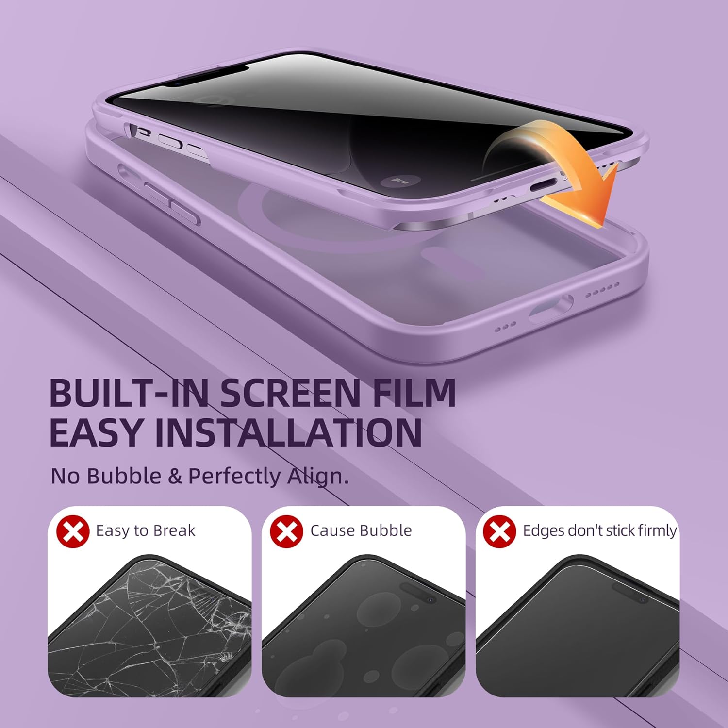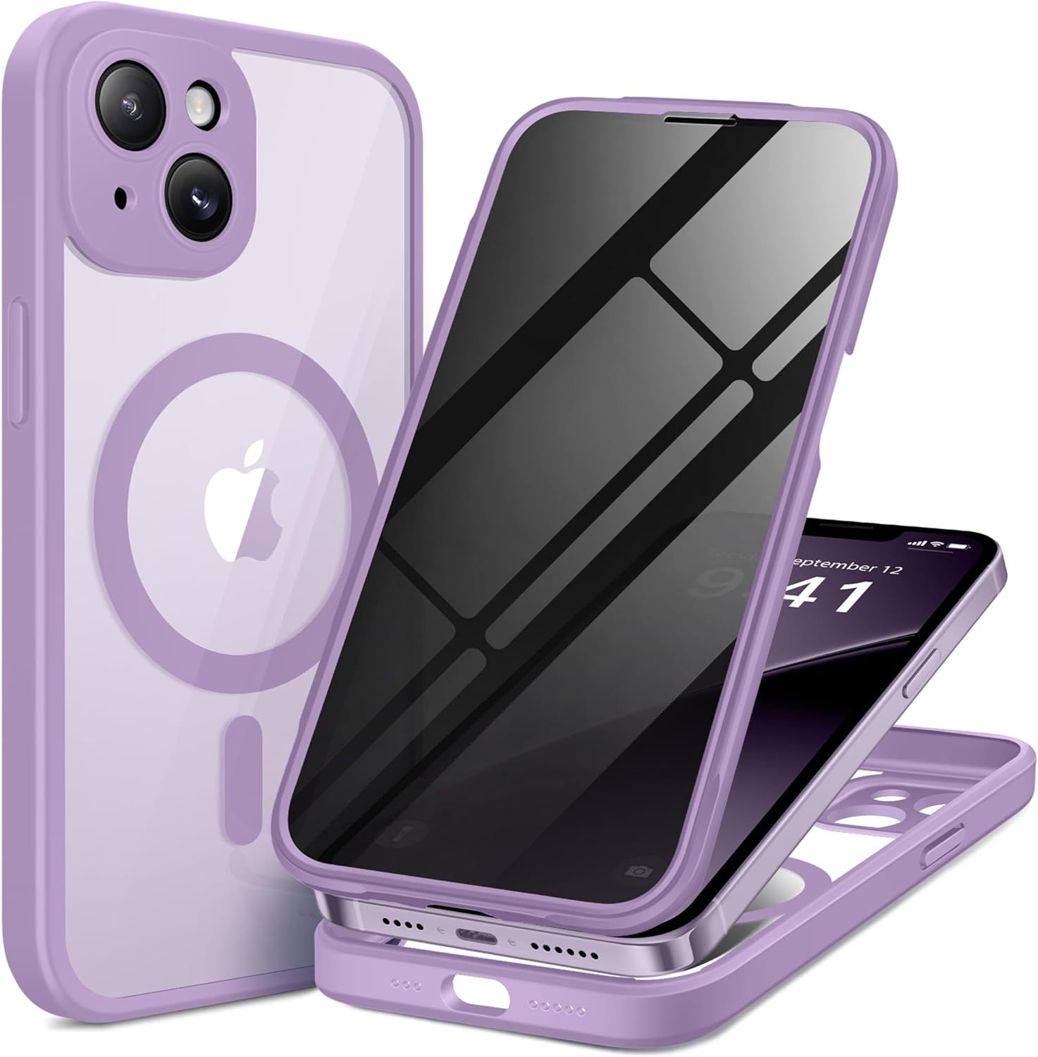BERFY Magnetic for iPhone 14 Case, Compatible with MagSafe, Built-in Privacy Screen Protector and Upgraded Camera Protection, Anti-Spy Full Body Shockproof Phone Case for 14 6.1", Light Purple