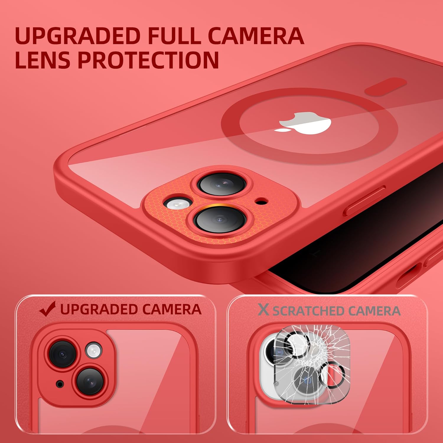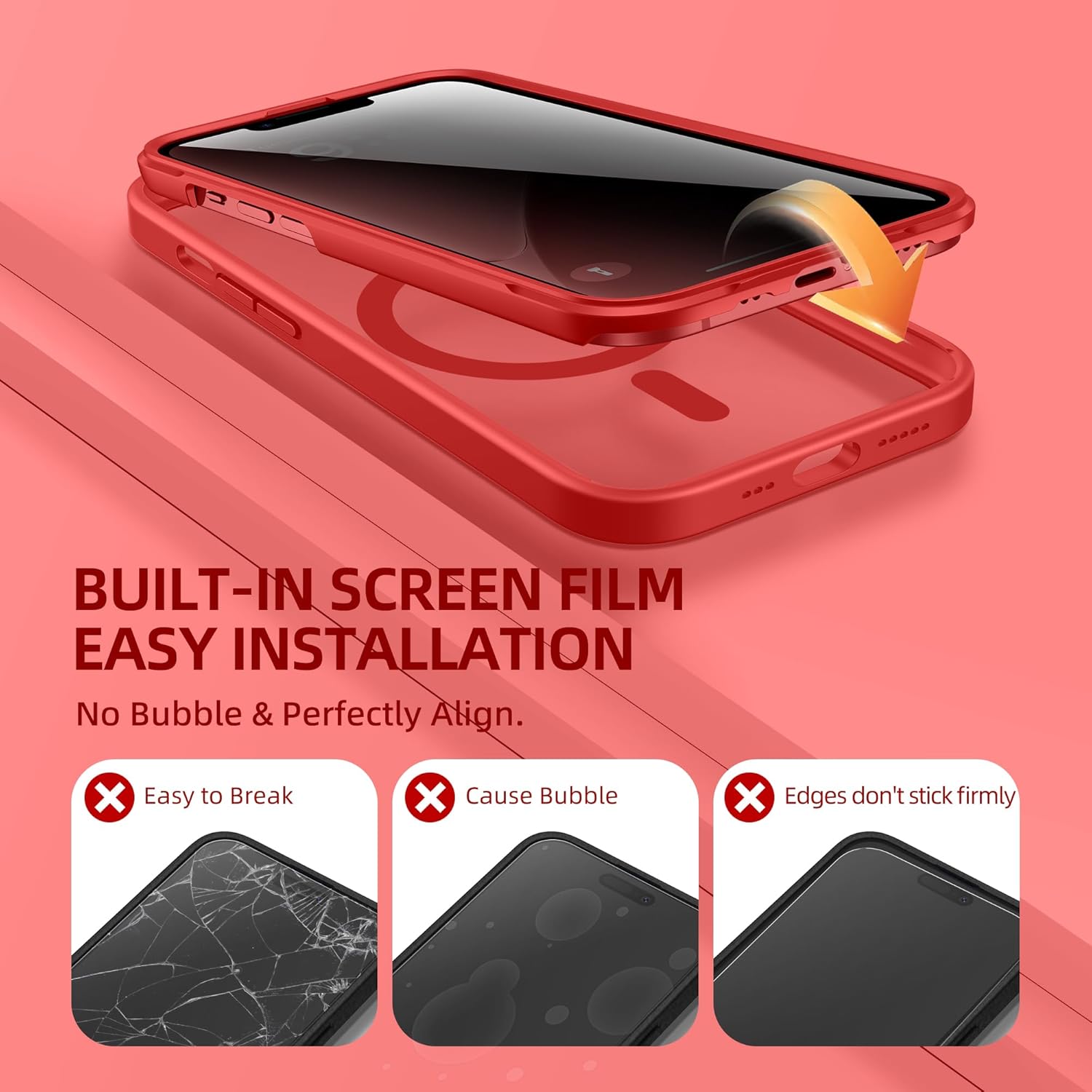 BERFY Magnetic for iPhone 14 Case, Compatible with MagSafe, Built-in Privacy Screen Protector and Upgraded Camera Protection, Anti-Spy Full Body Shockproof Phone Case for 14 6.1", Red