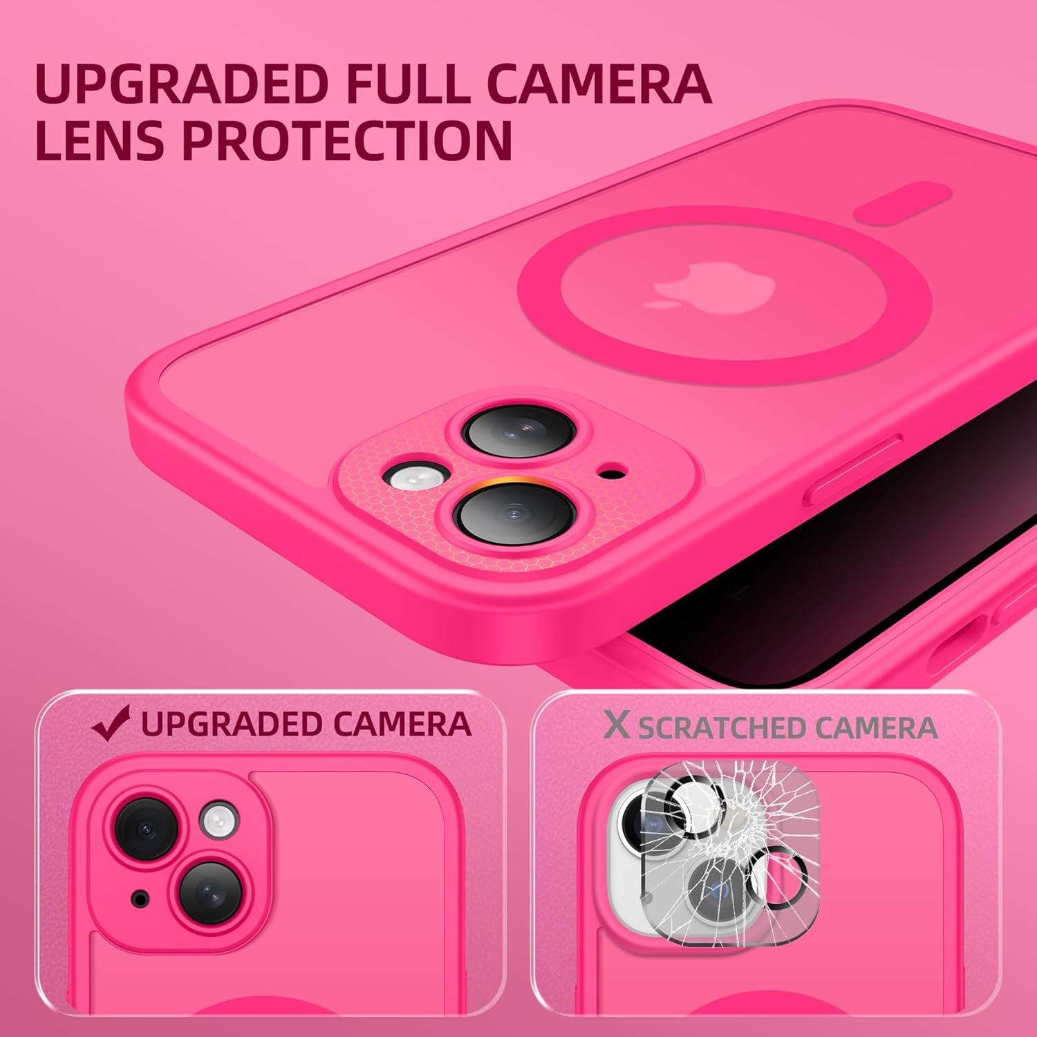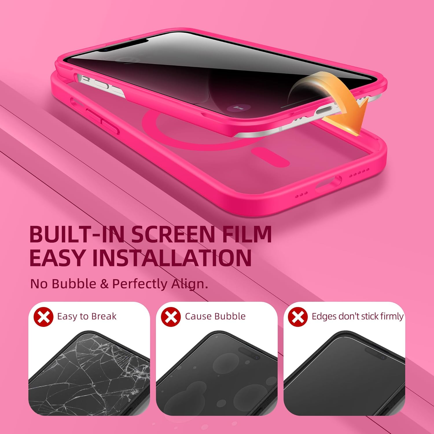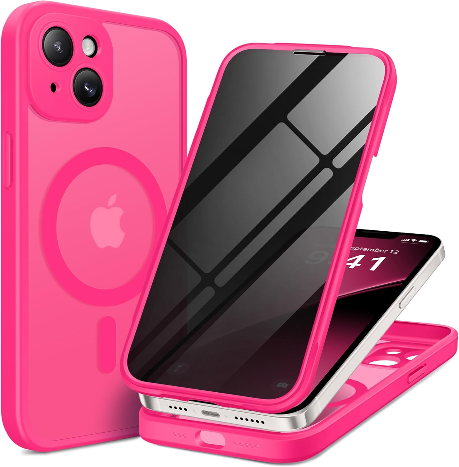 BERFY Magnetic for iPhone 14 Case, Compatible with MagSafe, Built-in Privacy Screen Protector and Upgraded Camera Protection, Anti-Spy Full Body Shockproof Phone Case for 14 6.1", Hot Pink
