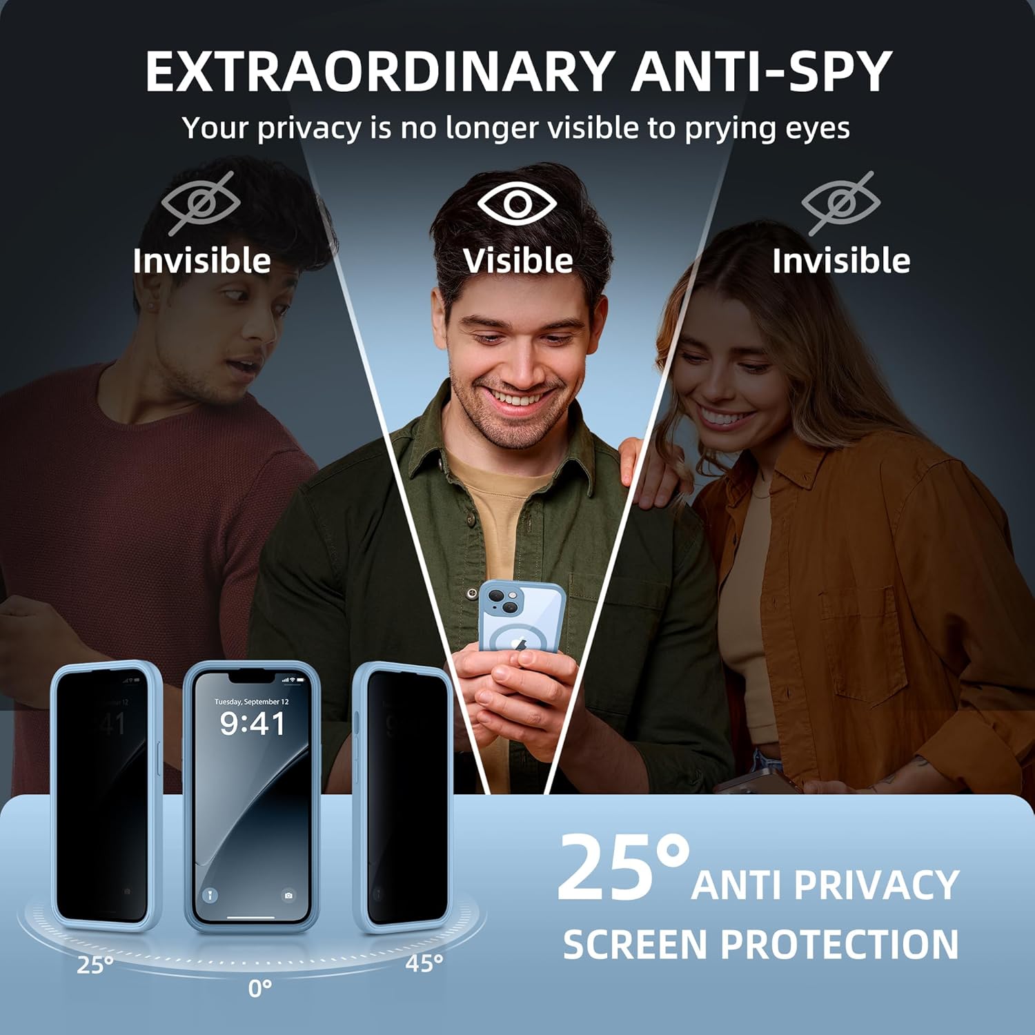 BERFY Magnetic for iPhone 14 Case, Compatible with MagSafe, Built-in Privacy Screen Protector and Upgraded Camera Protection, Anti-Spy Full Body Shockproof Phone Case for 14 6.1", Blue