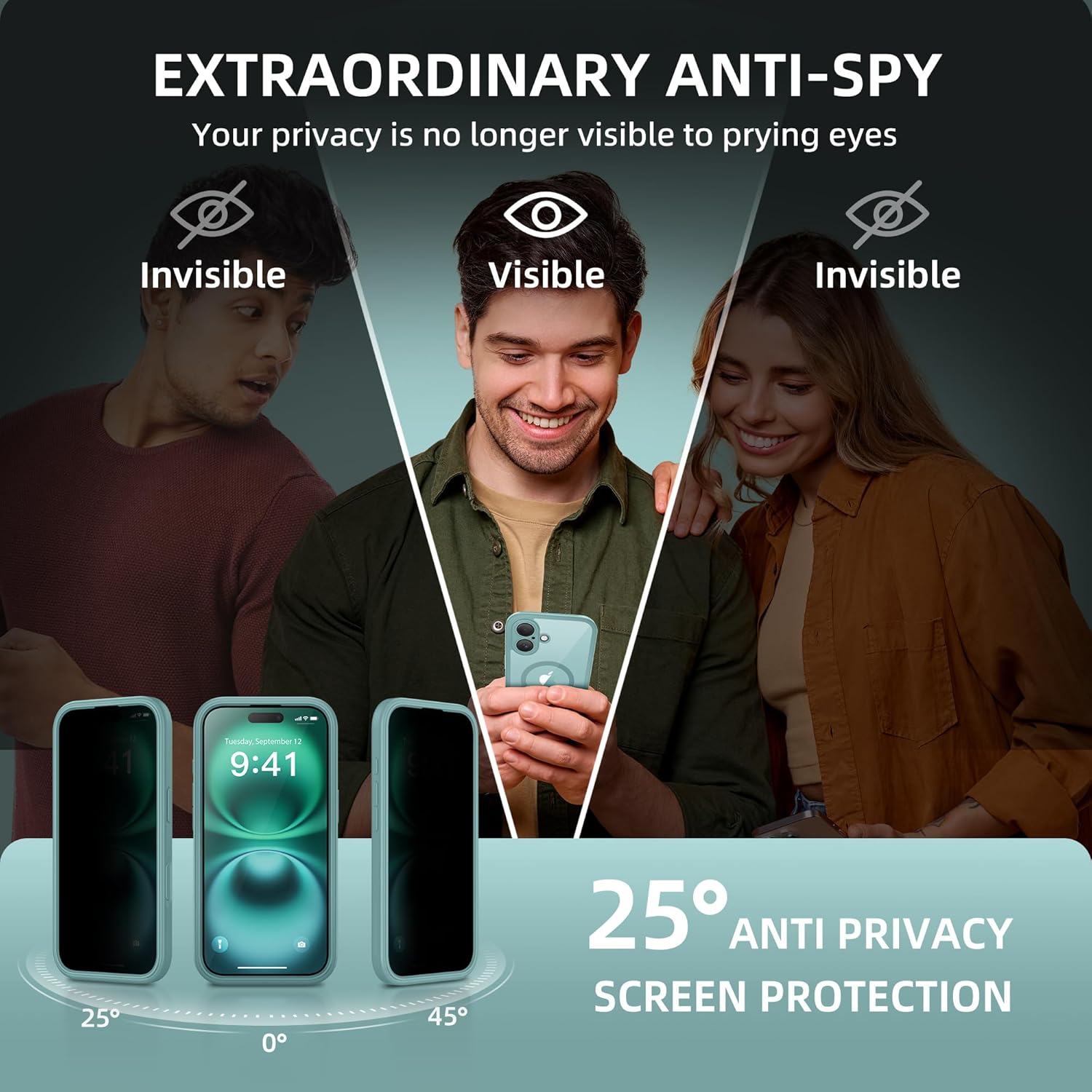 BERFY Magnetic for iPhone 16 Plus Case, Compatible with MagSafe, Built-in Privacy Screen Protector and Upgraded Camera Protection, Anti-Spy Full Body Shockproof Phone Case for 16 Plus 6.7", Green