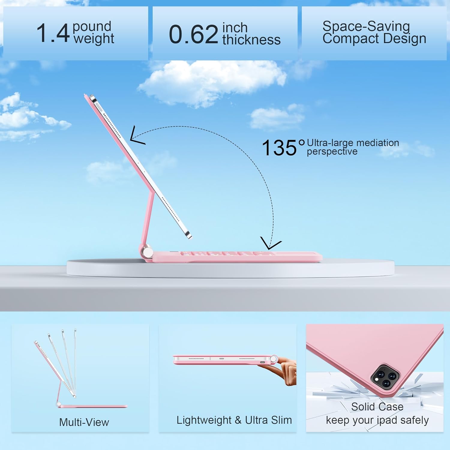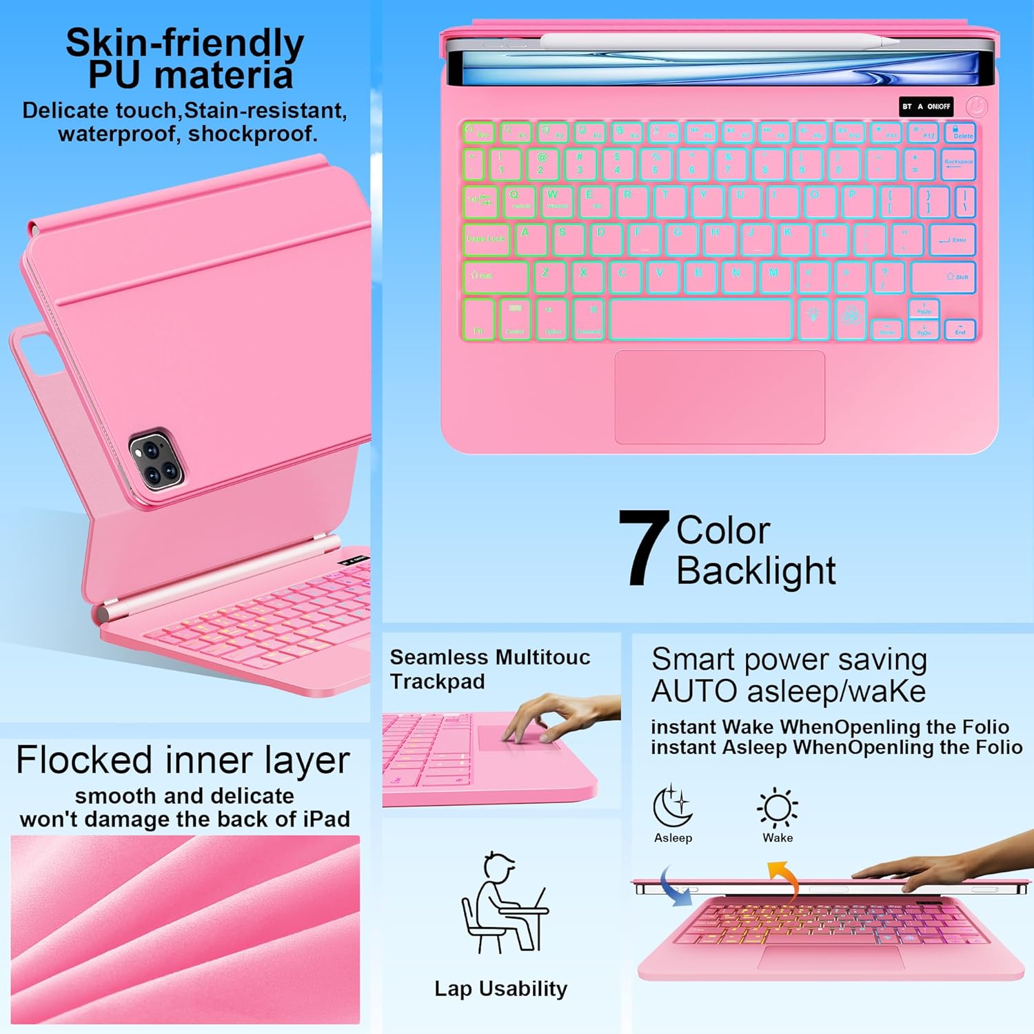 - Backlit Keyboard for iPad Air 13 inch and iPad Pro 12.9: From dawn to dusk, adapt effortlessly! Adjusting 7 backlight and 3 levels of brightness ensures clear visuals in every setting, enhancing your immersive experience. This feature not only adds a touch of style but also makes typing in low-light conditions more comfortable.