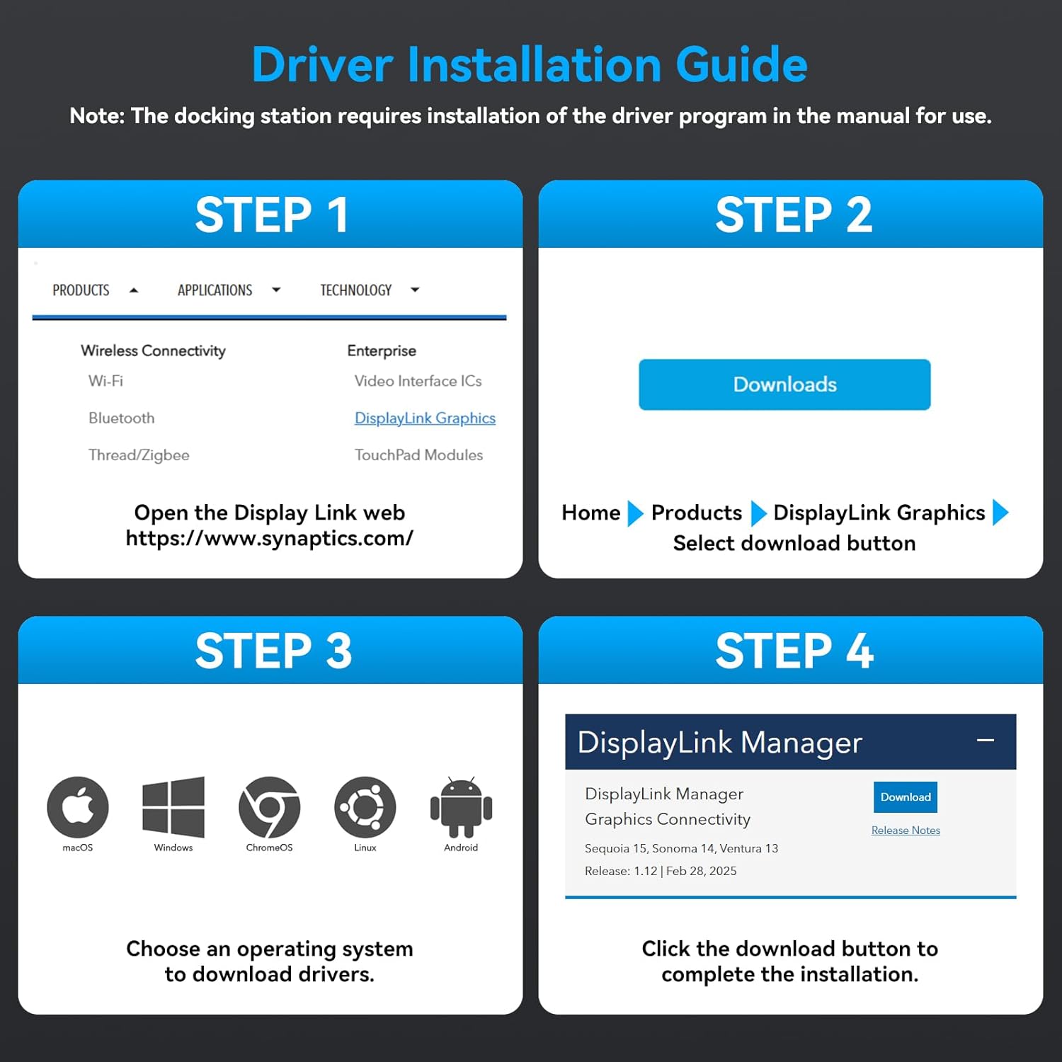 - 【Displaylink Docking Station 3 Monitors】The Displaylink Docking Station is used to expand your laptop to triple monitors, you only need to connect one USBC cable to the docking station to realize the expansion of 19 ports for your laptop. Say goodbye to the complexity of connecting multiple different peripherals to your laptop. One docking station can be used to expand your laptop with three displays, multiple USB ports, LAN ports, audio+mic ports, SD/Micro SD Card Slot etc. Note: The Displaylink driver must be installed when using the USBC docking station, otherwise OUT2 and OUT3 will not output images properly