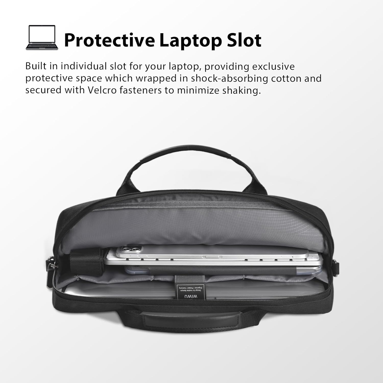 - Say Goodbye to Messy Tangles! - The front pocket of the WiWU laptop bag for men features a command center design with 3 easy-access compartments, allowing you to neatly organize your mouse, power bank, pens, and other accessories. Inside the laptop case, a dedicated padded compartment securely holds laptops up to 14 inches, ensure your device remain safely stored