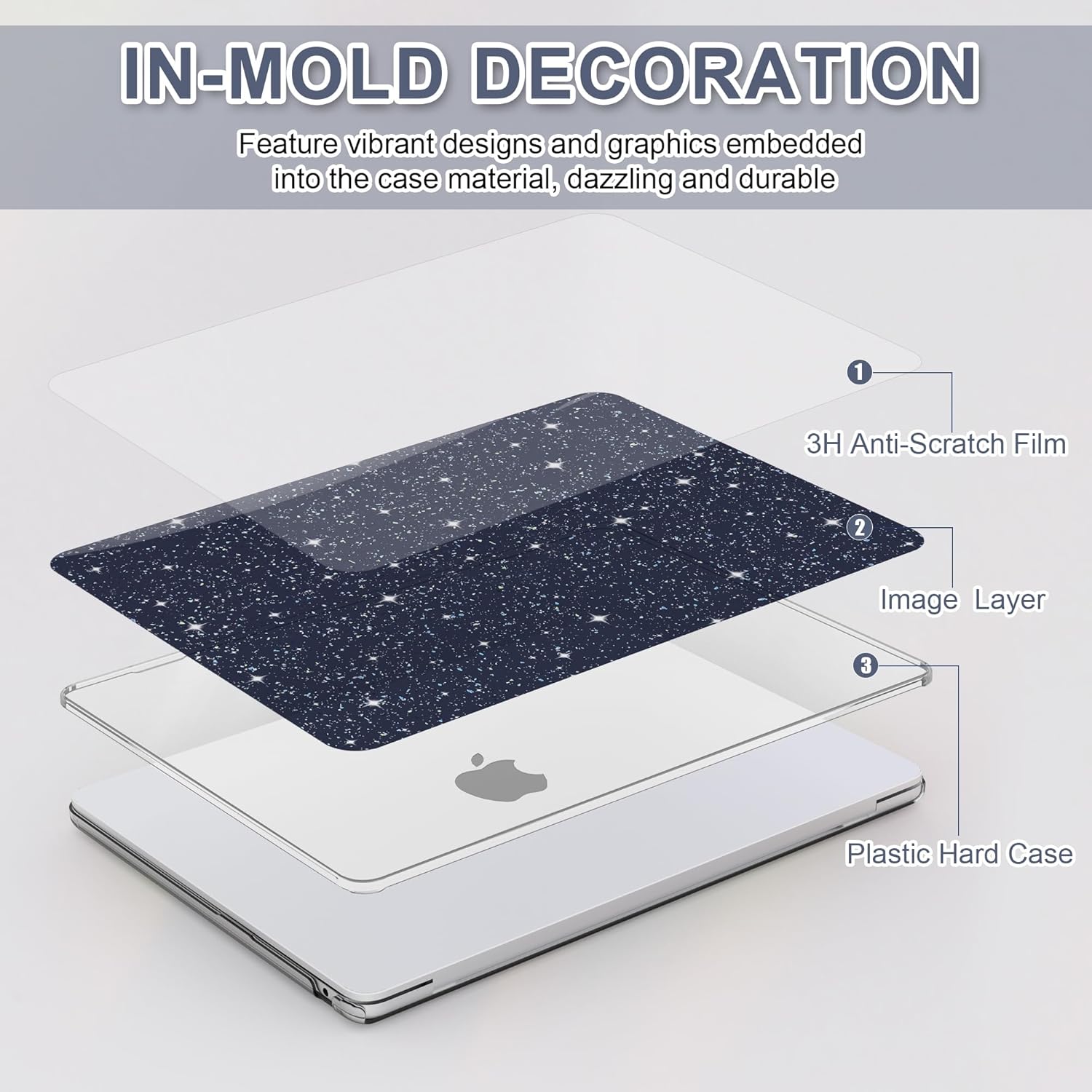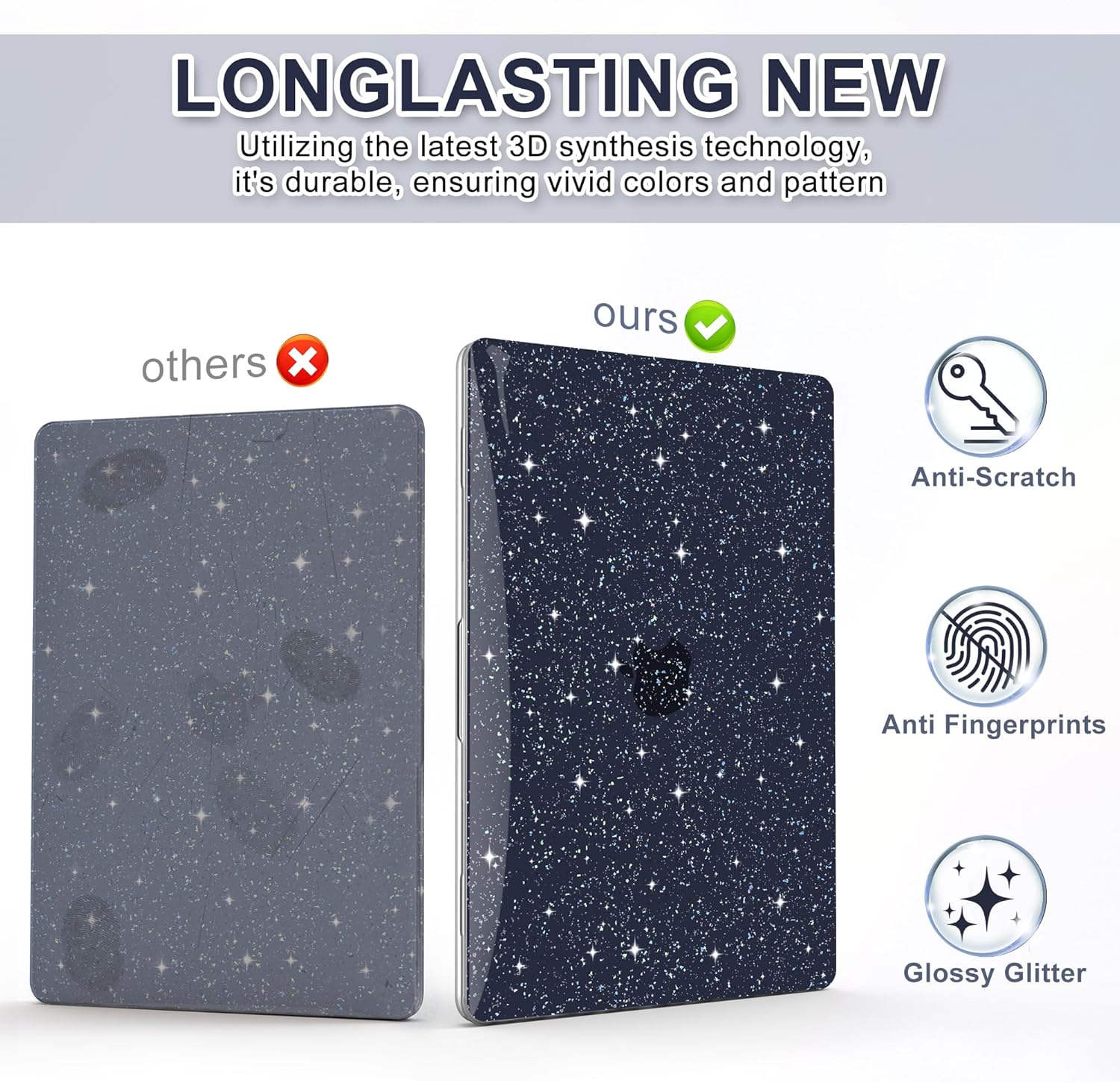 - Complete Bundle: The package includes 1 midnight glitter top case, 1 matte clear bottom case, 1 matching keyboard cover, and 1 screen protector. Additionally, please get in touch with us if you encounter any problems, we will work to make it right