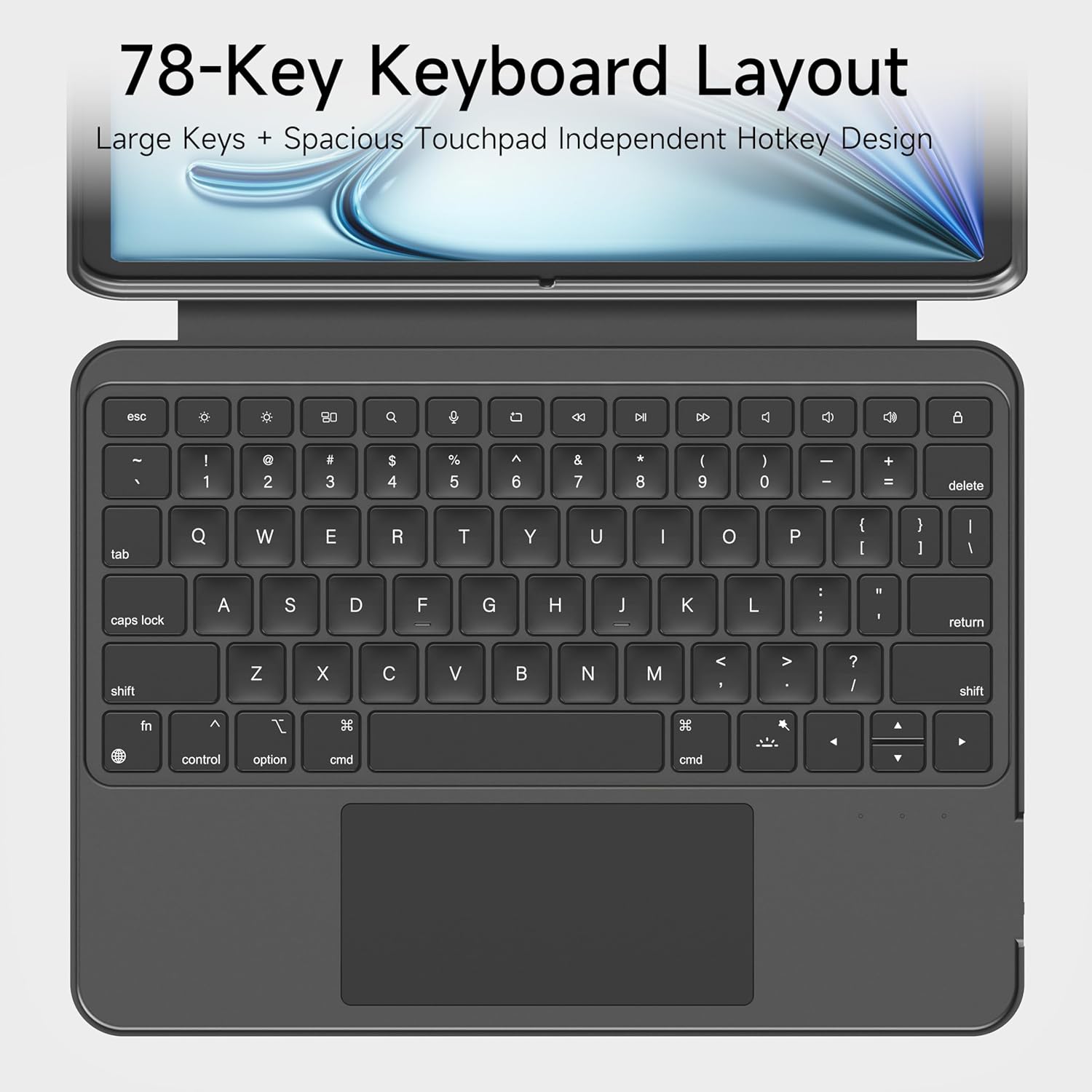 - [High-Performance Keyboard] The HOU 13-inch iPad Air M3 case with keyboard offers a 78-key layout with high-resilience keys for a comfortable typing experience. Equipped with a 7-color backlight and adjustable brightness, it’s perfect for working in various lighting conditions