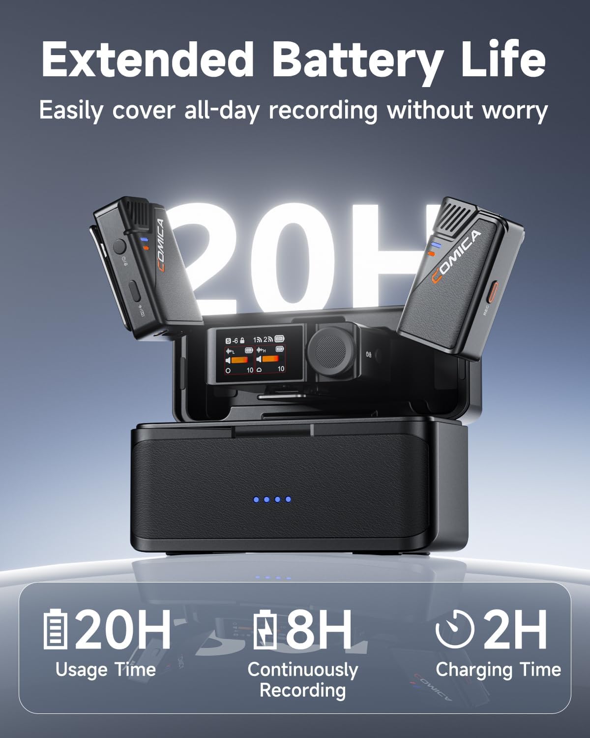 - 【2-Level Noise Reduction】Comica's self-developed CalMix noise canceling effectively reduces environmental noise in bustlingstreets or crowded rooms. Whether you're creating content, live streaming, conducting interviews, or engaging in other creative work, this microphone will ensure that your voice is heard loud and clear.