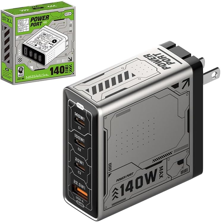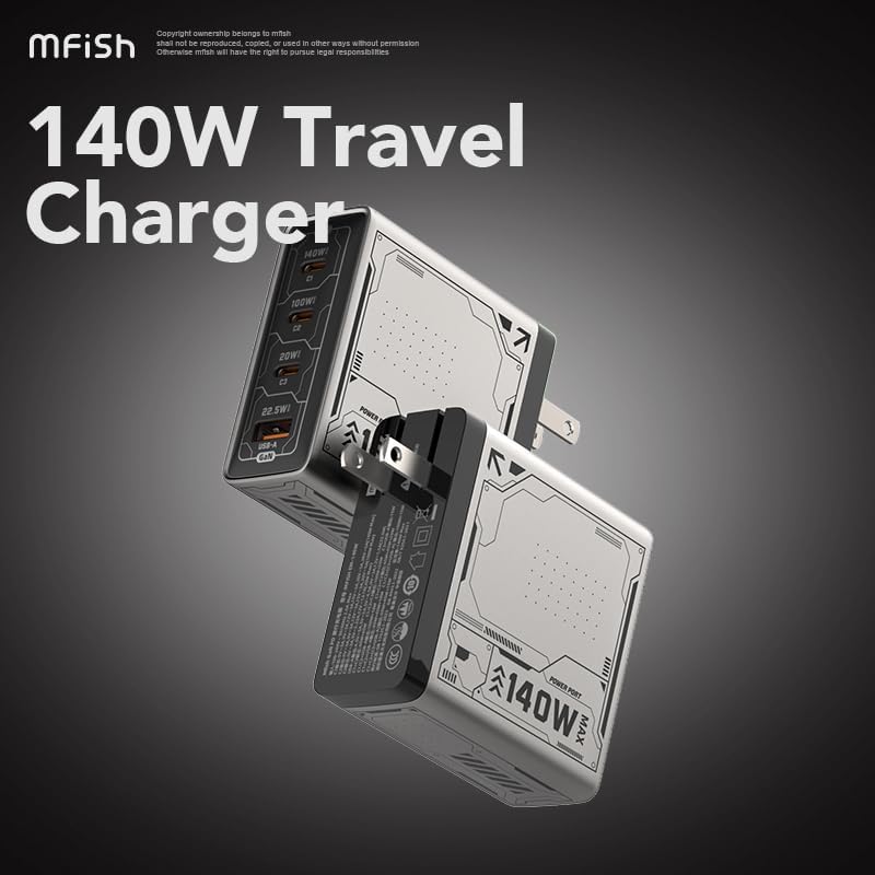 Mfish 140W USB C Charger, 4-Port GaN Charger Block, Foldable Fast Laptop Charger Power Adapter for MacBook Pro/Air, iPad Pro, iPhone 16 Pro, Galaxy S25/S24, Steam Deck, Google Pixelbook, and Tablet