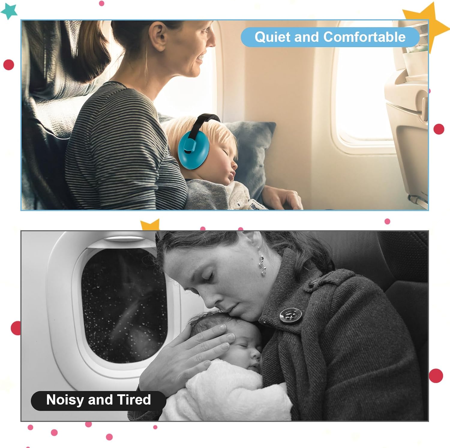- Various Colors: different colors of the baby noise reduction headphones are easy to match different outfits, you could choose them depending on the occasions, baby's clothes and even baby's mood, they will not only reduce the noise but also trendy decorations for baby